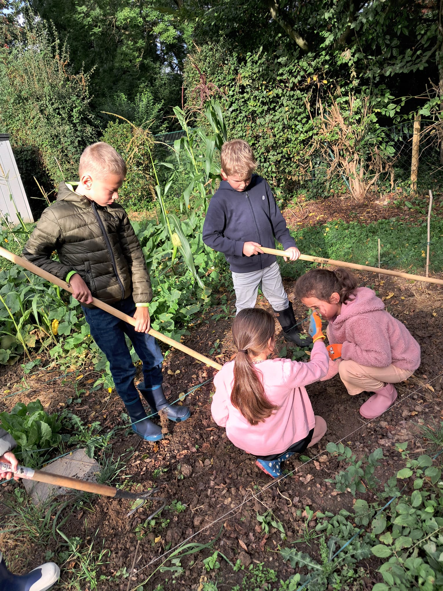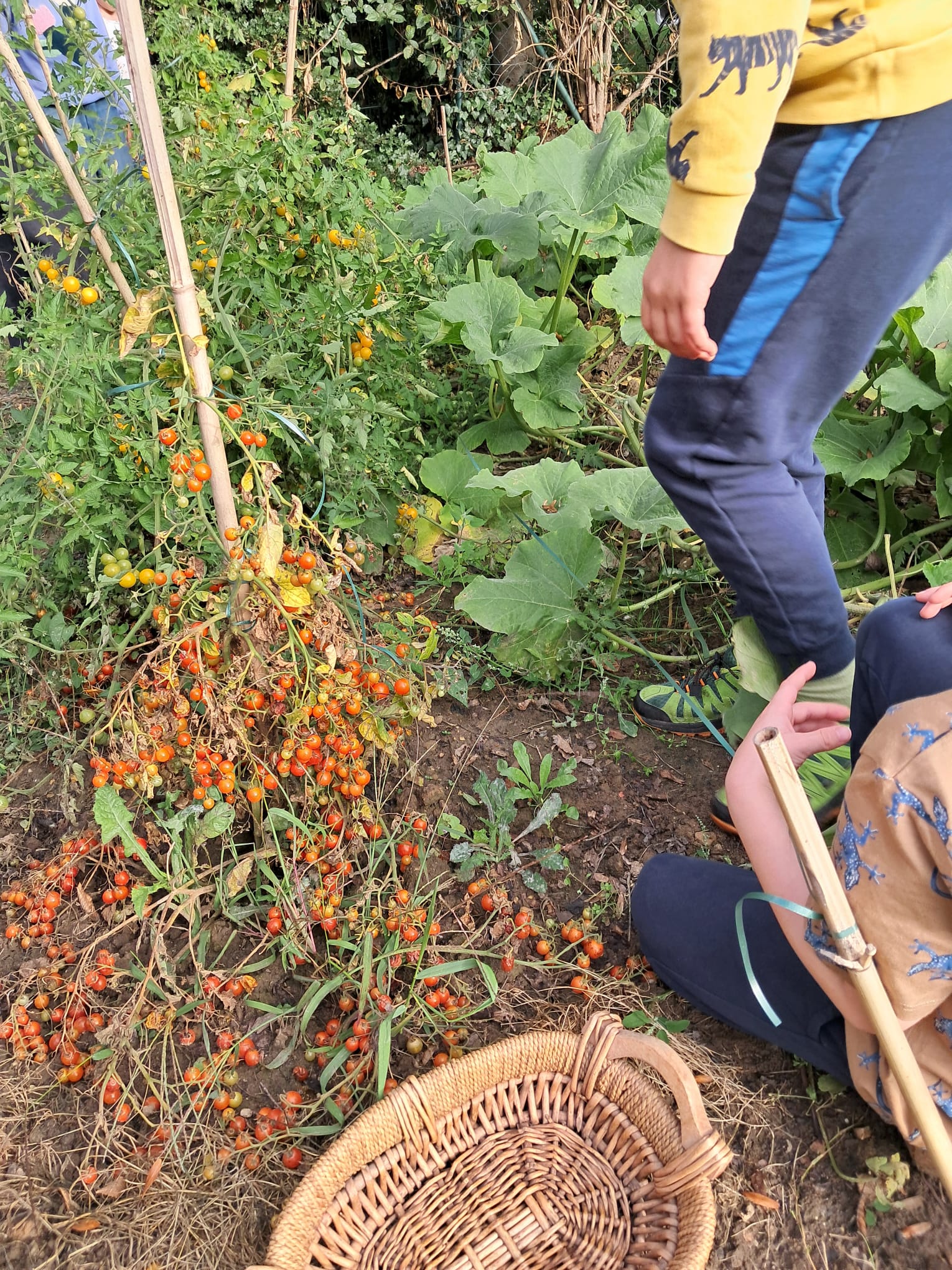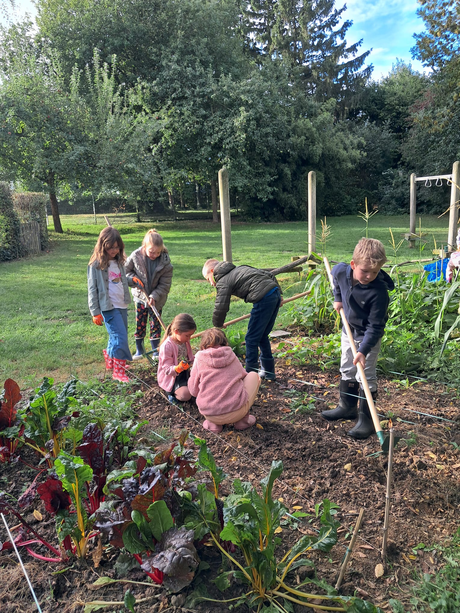 Während der Sommerferien haben uns Eltern fleißig bei der Pflege des Ackers unterstützt. Heute hieß es für die Kinder der Bären- und der Robbenklasse das erste Mal im neuen Schuljahr wieder: Raus auf den Natu und ackern! Es gab auch gleich wieder richtig viel zu tun: Blätter von den Zucchinipflanzen waren von Mehltau befallen und mussten entfernt, Unkraut gejätet und ein Beet für die Nachsaat vorbereitet werden. Hier haben wir neue Radieschen, Mairüben und Chinakohl gesät. Am meisten Freude jedoch hat den Kindern die reiche Ernte an gelben Zucchini, Tomaten und Gurken bereitet. Die Gurken und Tomaten wurden dann auch gleich in den Klassen zur Frühstückspause verspeist. Sie waren richtig lecker!