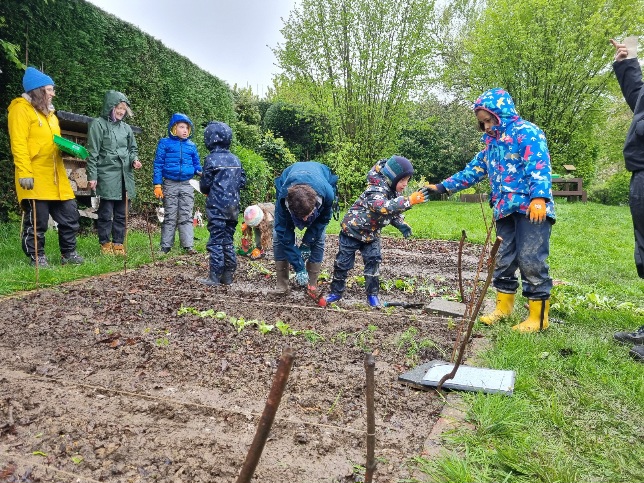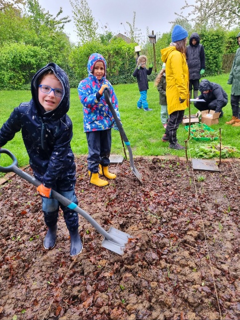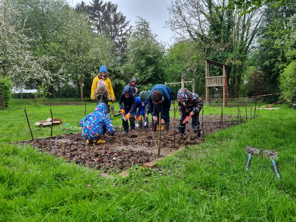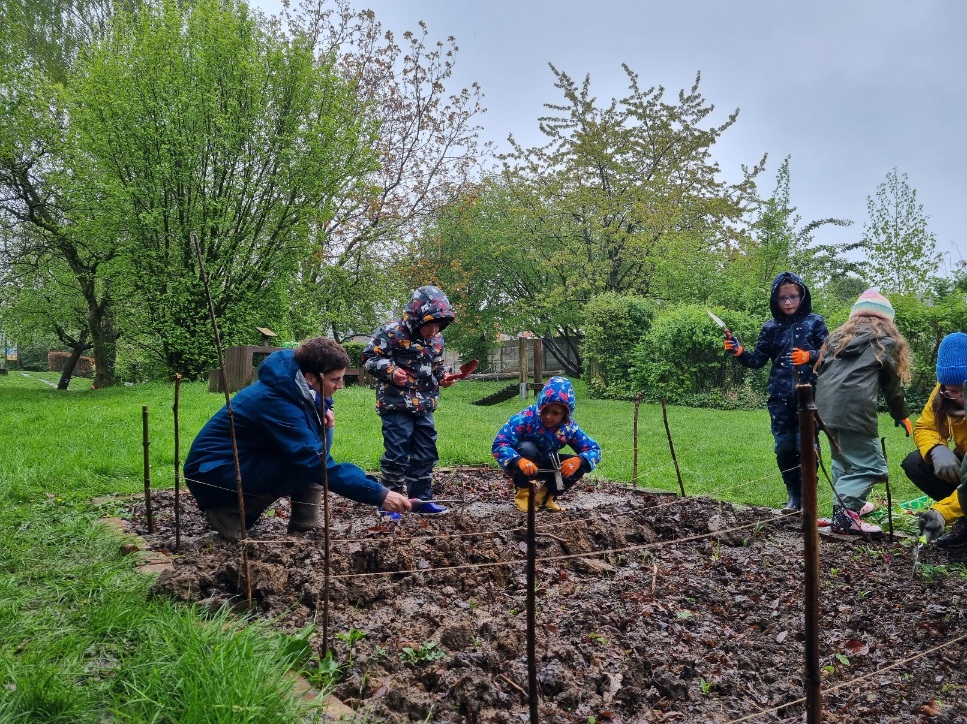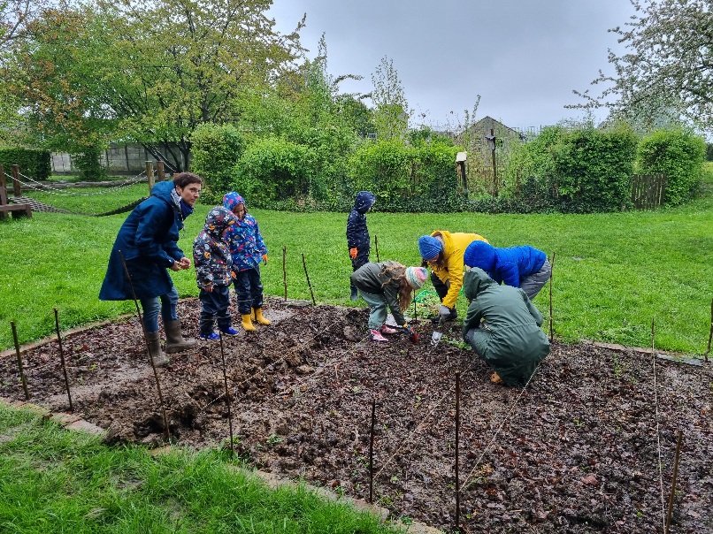 Beschreibung: Bei leider äußerst mäßigen Wetterbedingungen wurden am Freitag, dem 19. April die ersten Pflanzen des neuen Ackerjahres gesetzt. Acht tapfere Bärenkinder trotzten Regen und Kälte und sorgten dafür, dass unser Acker rechtzeitig wieder bestellt werden konnte. Das habt ihr super gemacht!