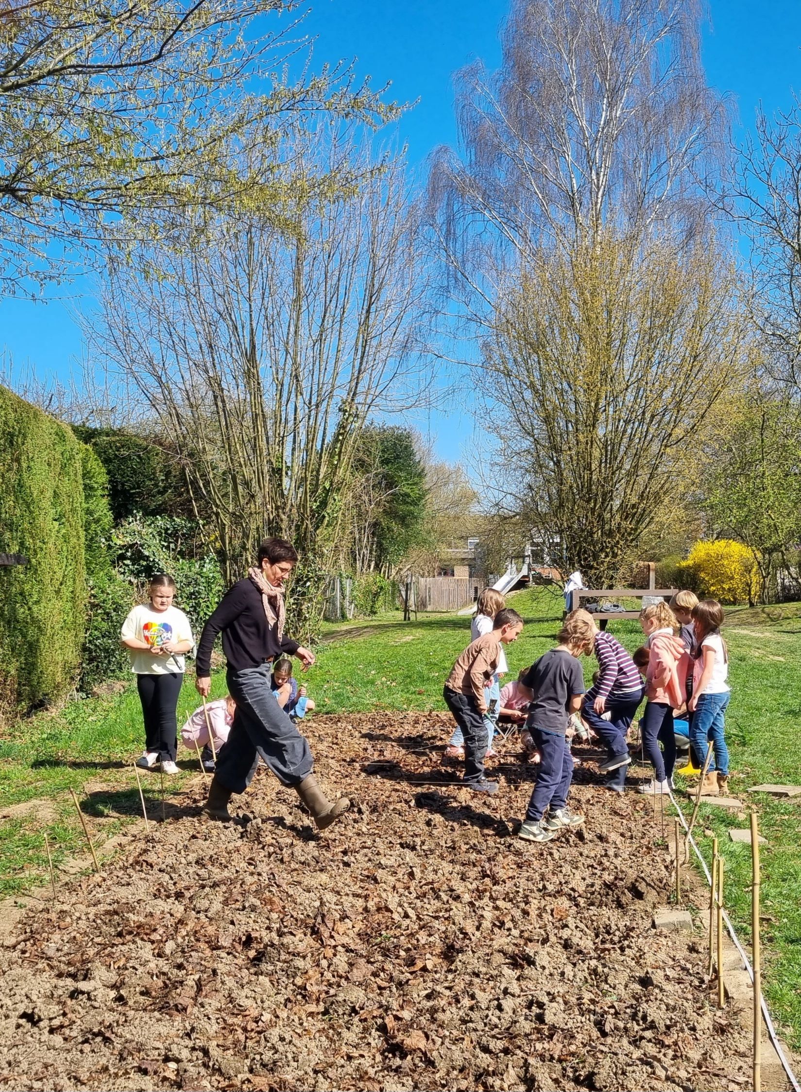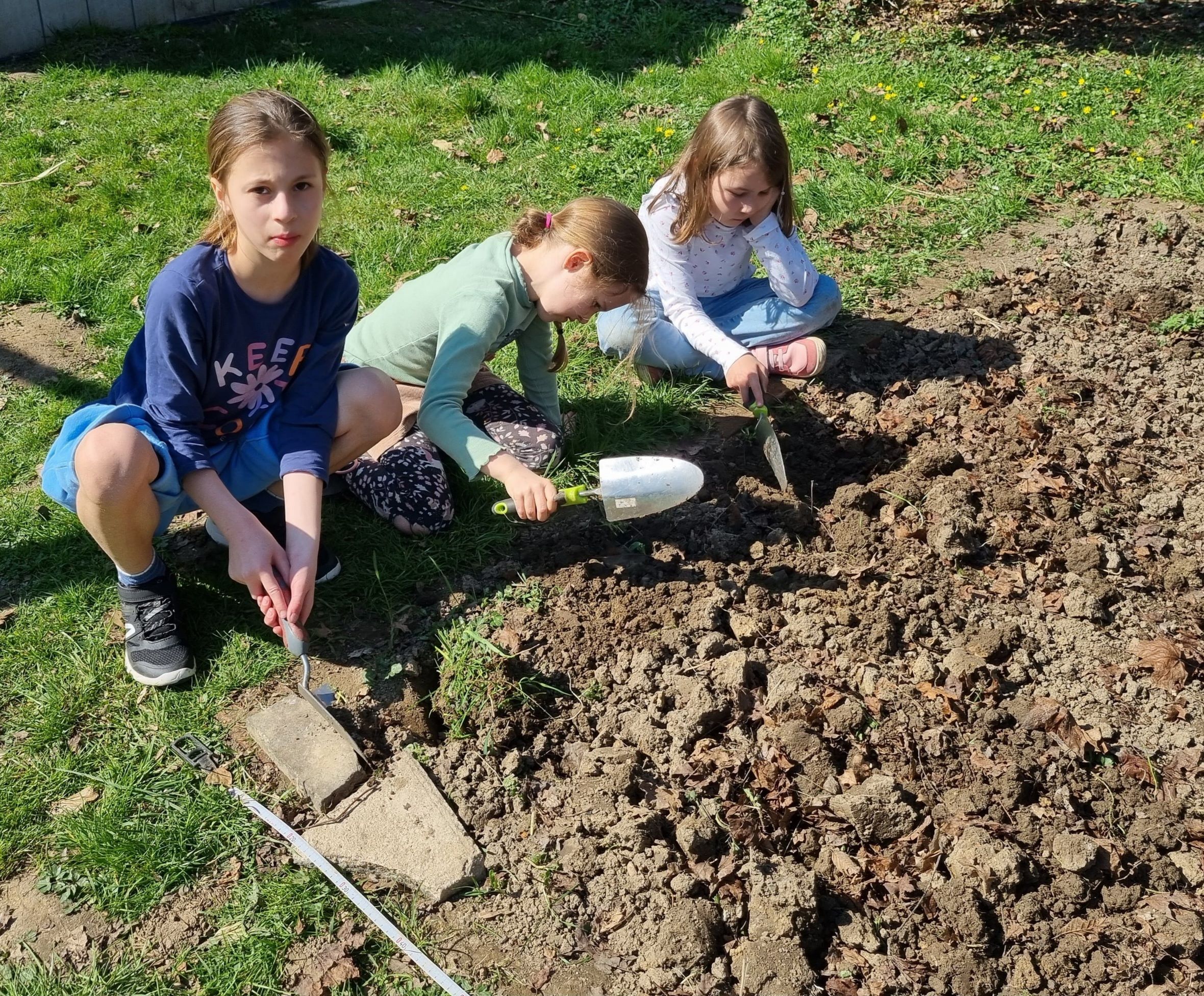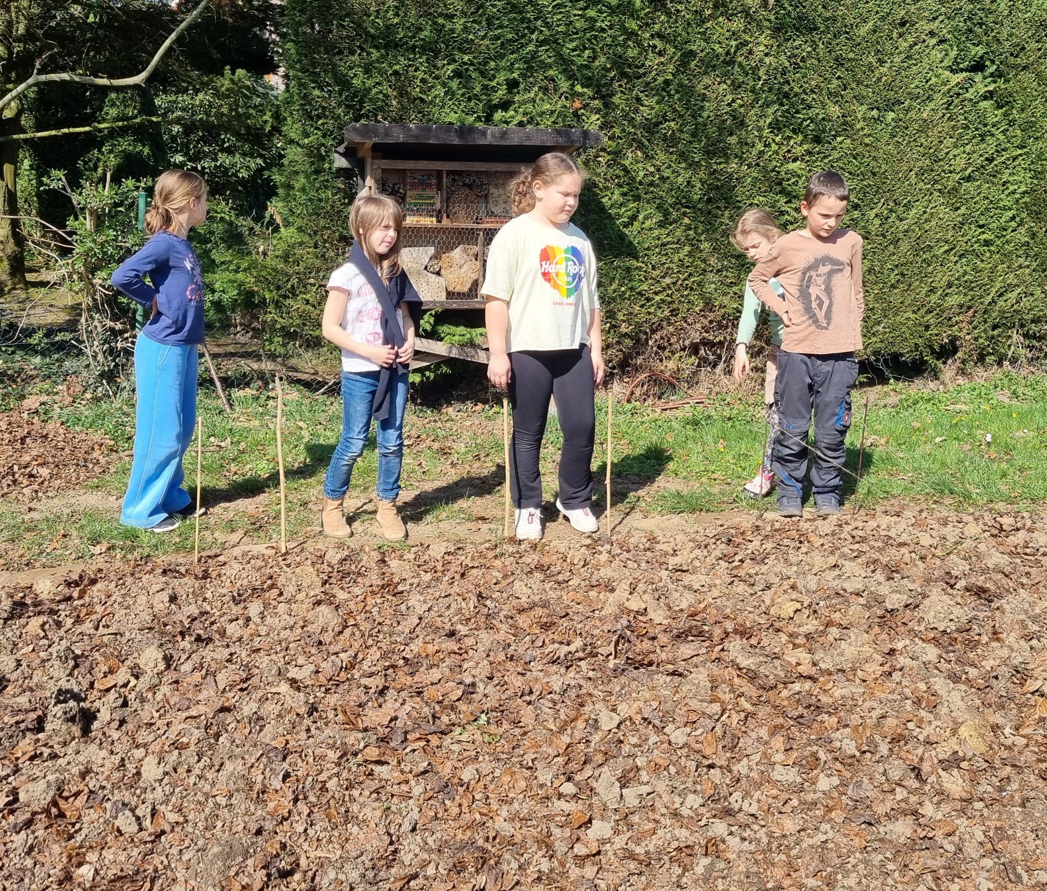 Der Frühling ist da! Und deshalb wollten Robben-, Bären- und Wolfskinder unseren Schulacker aus dem Winterschlaf holen. Also Matschhosen und Gummistiefel an und ab auf den Natu! Mit Hilfe von Emmas Mama haben wir zuerst das Laub untergegraben, die Erde gelockert, Regenwürmer gezählt und alte (Kartoffel-) Schätze ausgebuddelt. Danach haben wir die neuen Beete ausgemessen und abgesteckt und die Arbeitswege dazwischen platt gestampft. Heute bekamen wir Besuch von unserer Ackerdemie-Betreuerin Lena, die mit uns die erste Pflanzung besprochen hat. Jetzt sind Kartoffeln und Radieschensamen in der Erde und wir warten gespannt auf die Post mit dem nächsten Pflanzgut.