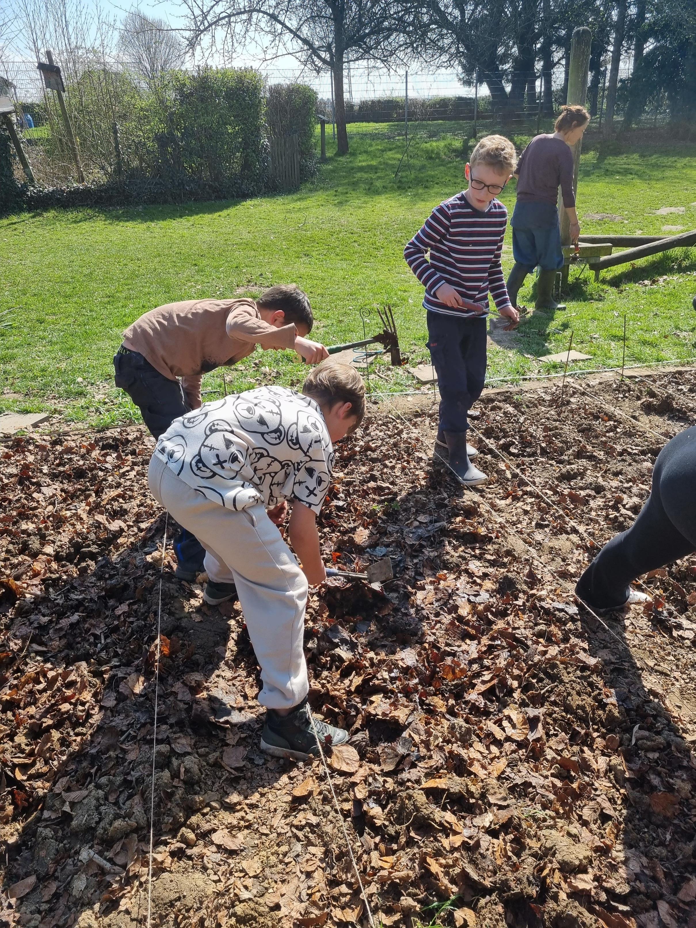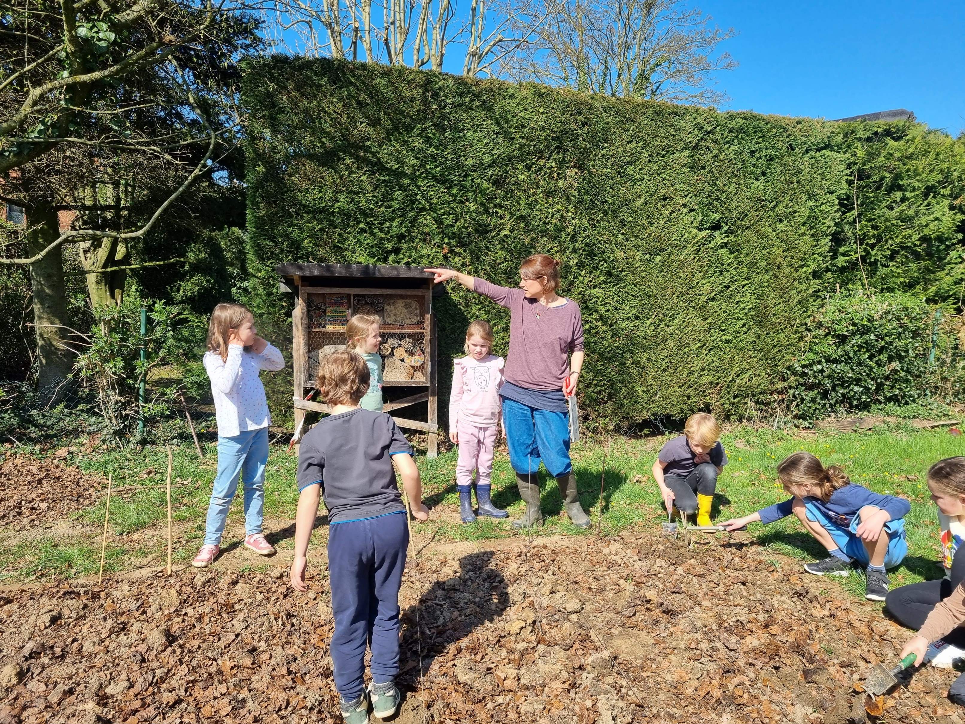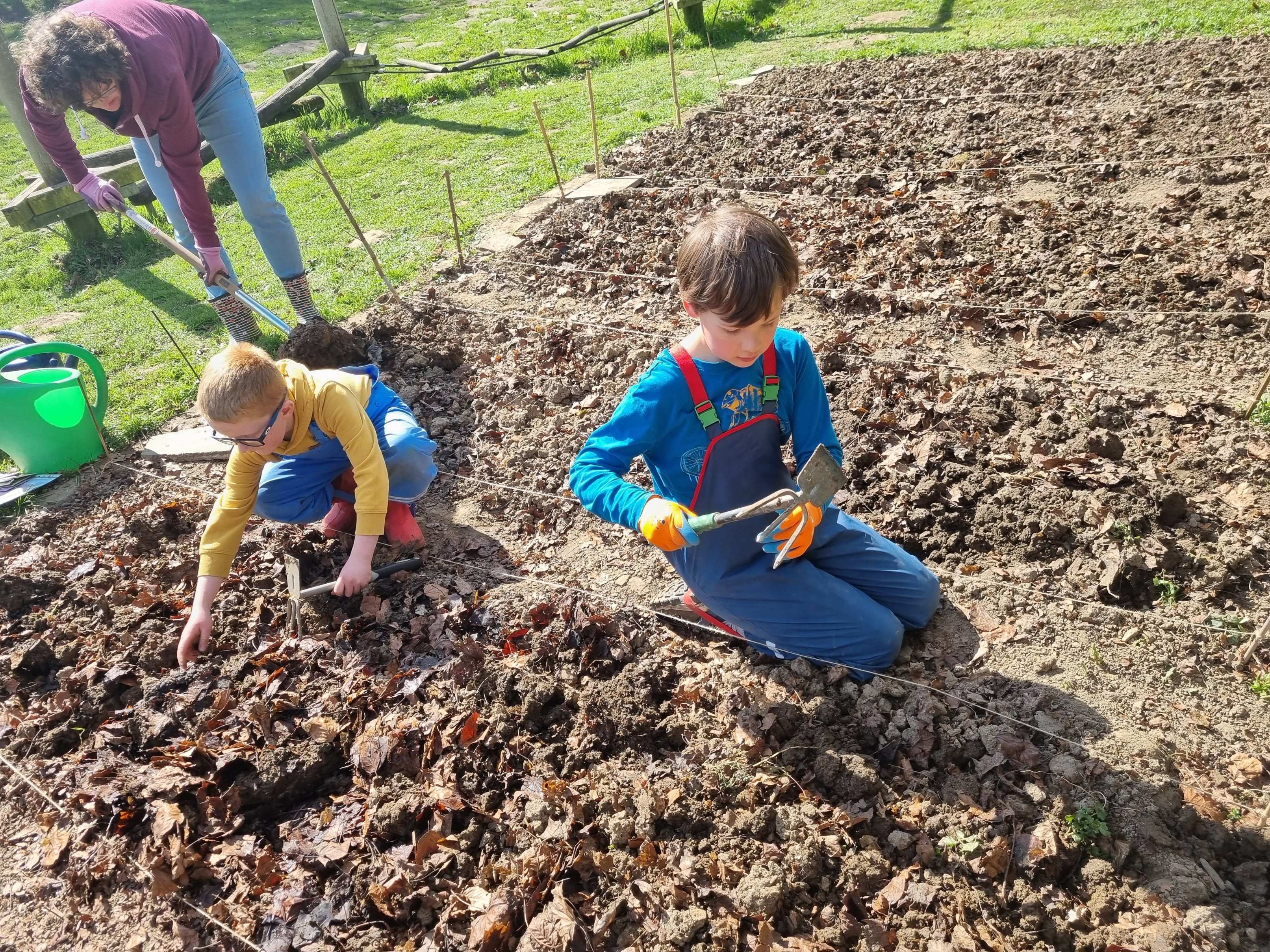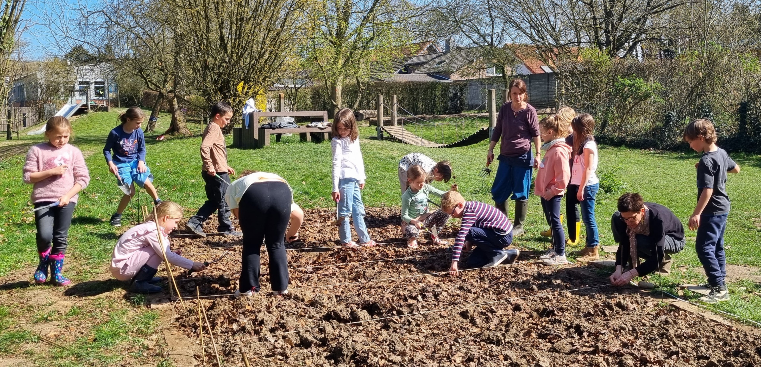 Der Frühling ist da! Und deshalb wollten Robben-, Bären- und Wolfskinder unseren Schulacker aus dem Winterschlaf holen. Also Matschhosen und Gummistiefel an und ab auf den Natu! Mit Hilfe von Emmas Mama haben wir zuerst das Laub untergegraben, die Erde gelockert, Regenwürmer gezählt und alte (Kartoffel-) Schätze ausgebuddelt. Danach haben wir die neuen Beete ausgemessen und abgesteckt und die Arbeitswege dazwischen platt gestampft. Heute bekamen wir Besuch von unserer Ackerdemie-Betreuerin Lena, die mit uns die erste Pflanzung besprochen hat. Jetzt sind Kartoffeln und Radieschensamen in der Erde und wir warten gespannt auf die Post mit dem nächsten Pflanzgut.