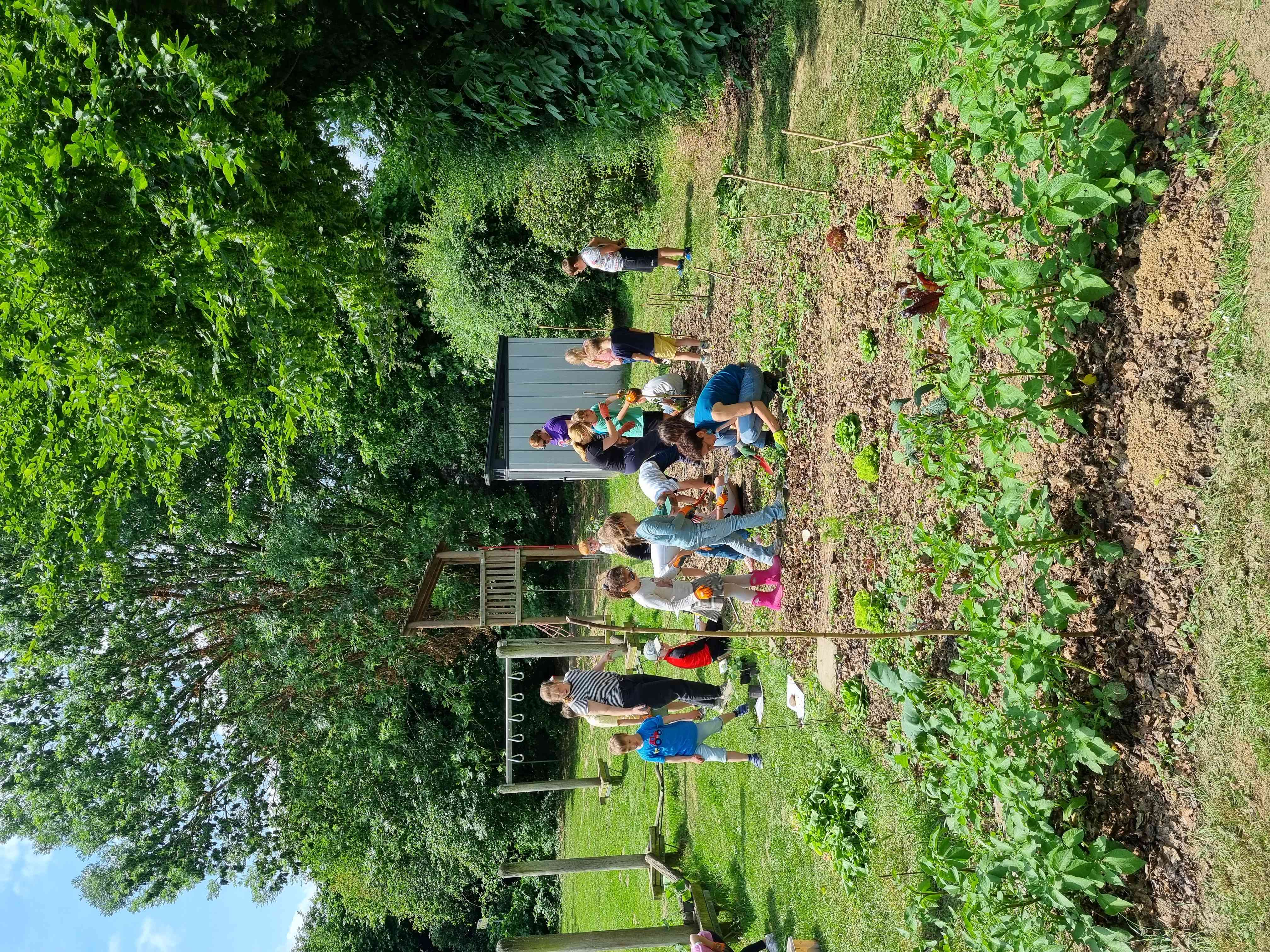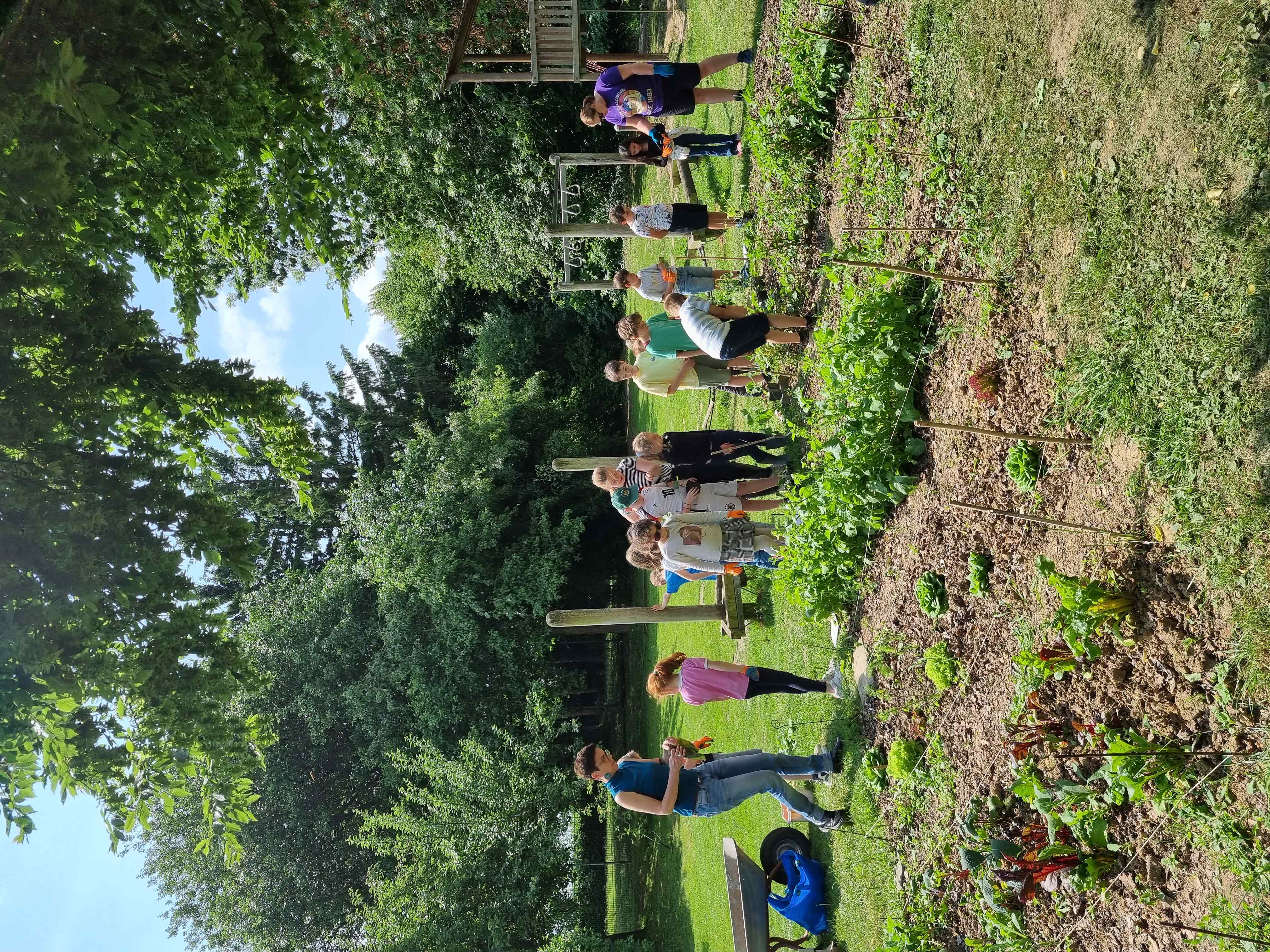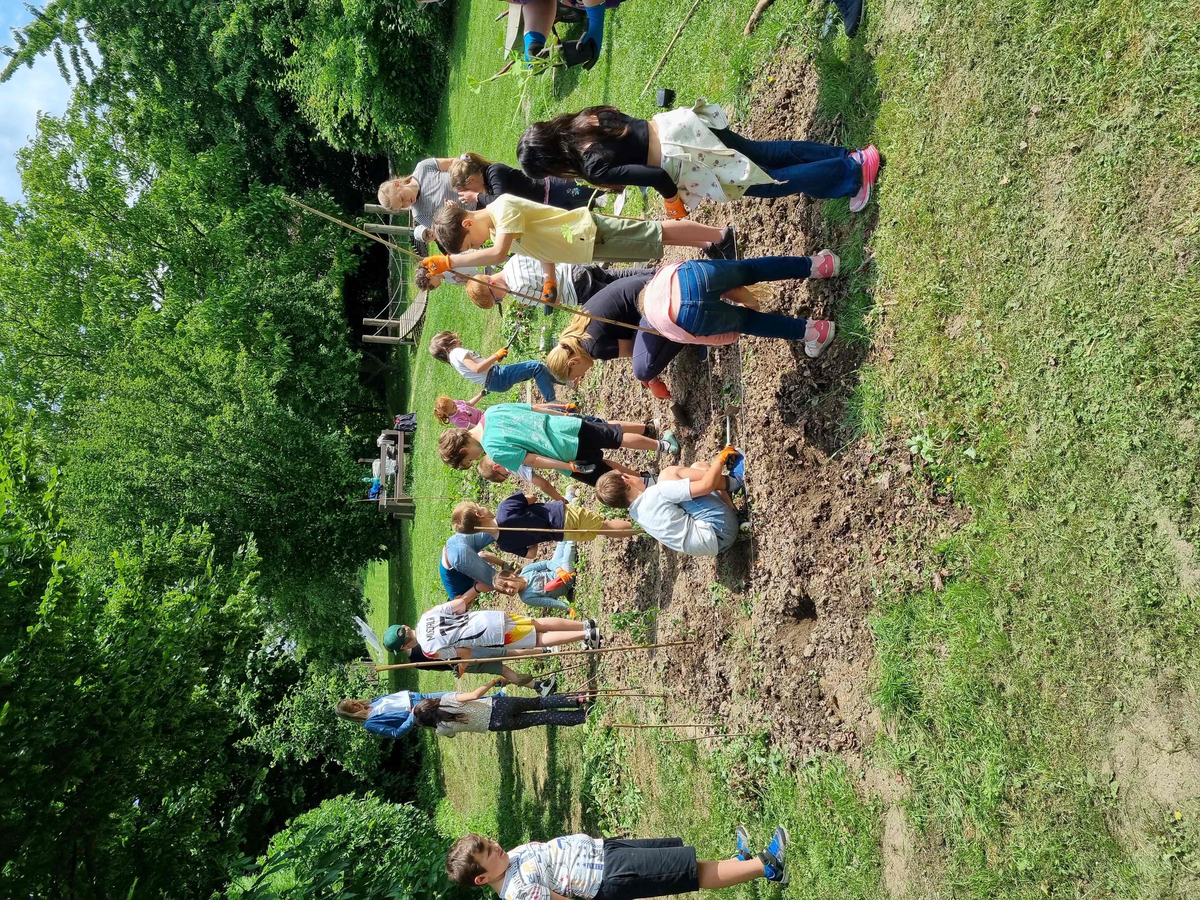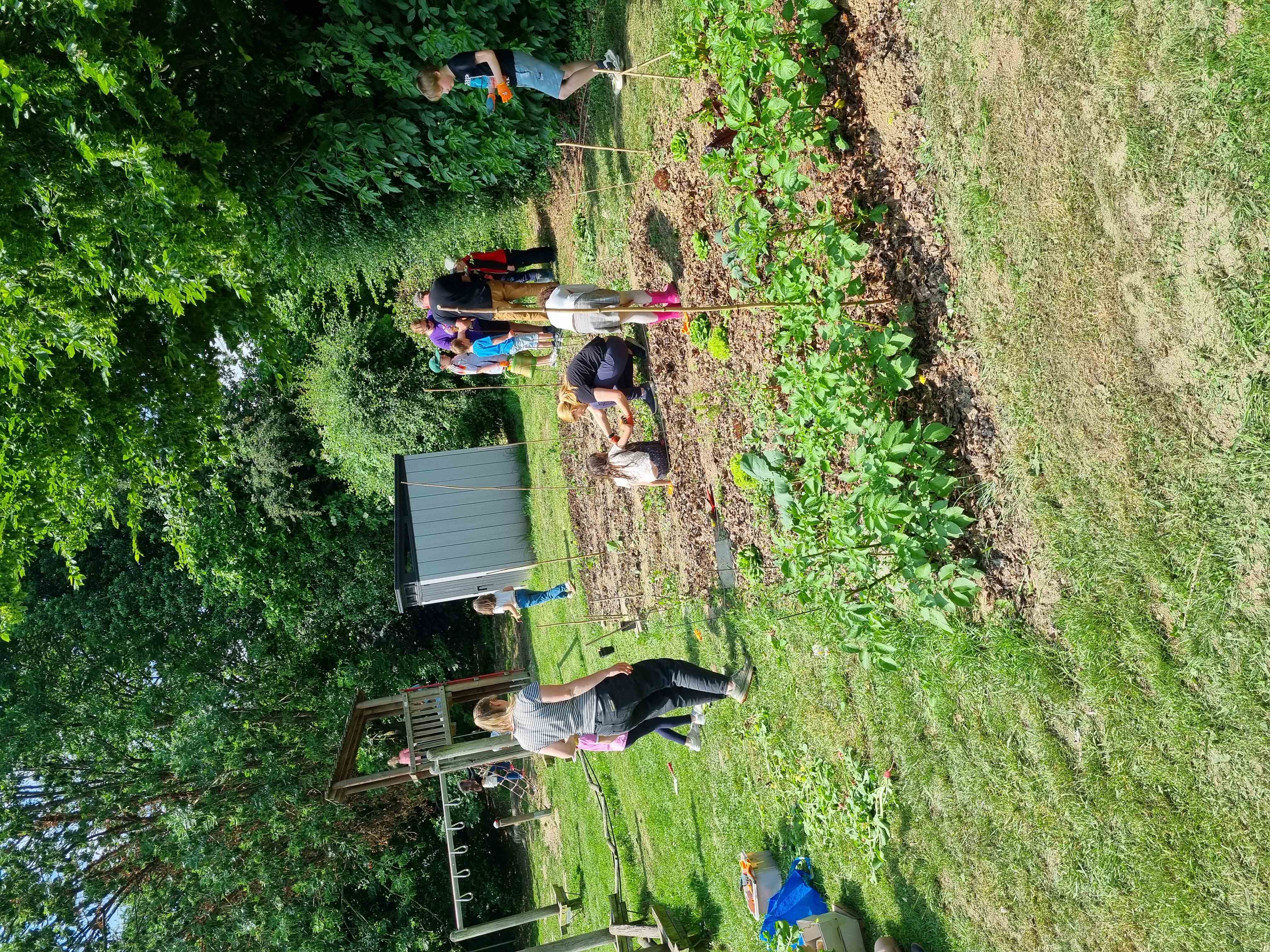Wuselig ging es heute auf unserem Acker zu, denn die 2. Pflanzung stand an. Lena, unsere Ackercoach, hat mit uns besprochen, was wir einpflanzen. Das waren: Tomaten, Kürbisse, Endivien Salat, Zuckermais, Zucchini und Gurken. Zuvor mussten wir aber noch Unkraut rupfen und die Radieschen ernten. Die gibt es morgen in der Frühstückspause. Jetzt müssen wir fleißig gießen und die Schnecken fernhalten und den Pflänzchen beim Wachsen zuschauen.