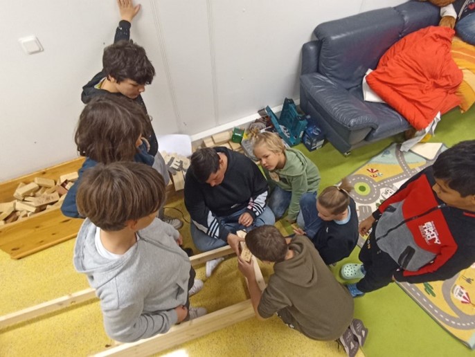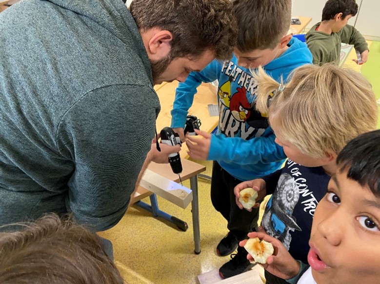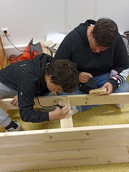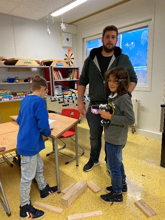 Um einigen älteren Jungs ein besonderes Projekt anzubieten, haben Betreuer*innen der OGS gemeinsam mit den Kindern eine Holzbank für den Einsatz im Klassenraum gebaut. Beginnend mit der Ausmessung einer bereits fertigen Bank über den Einkauf in einem Baumarkt bis hin zum Schleifen und Zusammenschrauben der einzelnen Holzteile haben die Jungs alle Schritte eigenständig geplant und durchgeführt, natürlich unter der Beobachtung der beteiligten Betreuer*innen, die mit Rat und Tat zur Seite standen. Die Jungs hatten so die Möglichkeit, ein eigenes Projekt selbst zu gestalten und haben dies mit Bravour gemeistert. Zum Abschluss durften sich alle Beteiligten mit einem Brennpeter auf der Bank verewigen. Da die Jungs viel Spaß an dem Projekt hatten und sich einige Schritte schon gut eingespielt haben, sind weitere Bänke für die Klassenräume in Planung.
