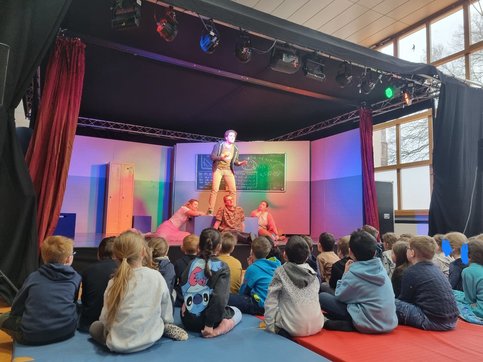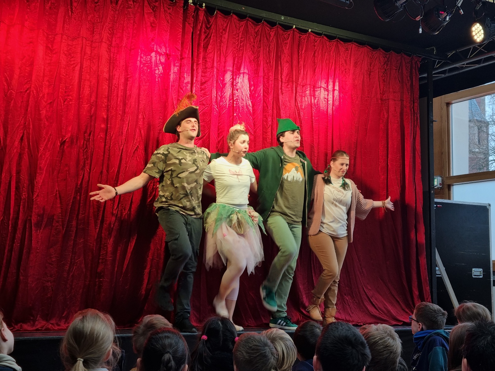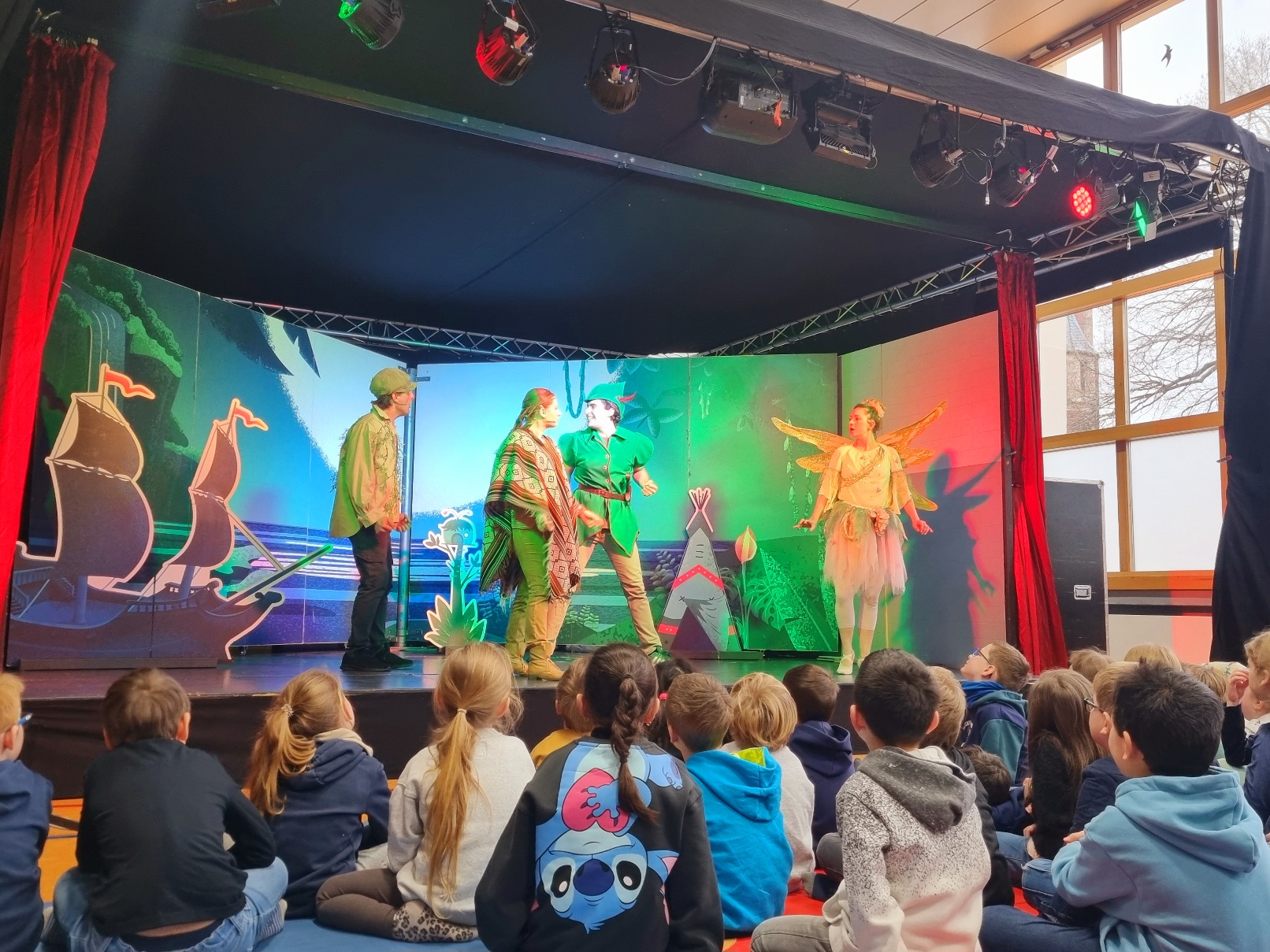 Auch in diesem Jahr konnten wir wieder die Bildungszugabe der Städteregion Aachen nutzen und mit der ganzen Schule die Aufführung „Peter Pan“ des DAS DA Theaters besuchen. Da der Zugang zu unserer Turnhalle für das Bühnenbild zu unwegsam ist, mussten wir wieder auf die Halle der KGS Straß zurückgreifen, die uns netterweise zur Verfügung gestellt wurde.