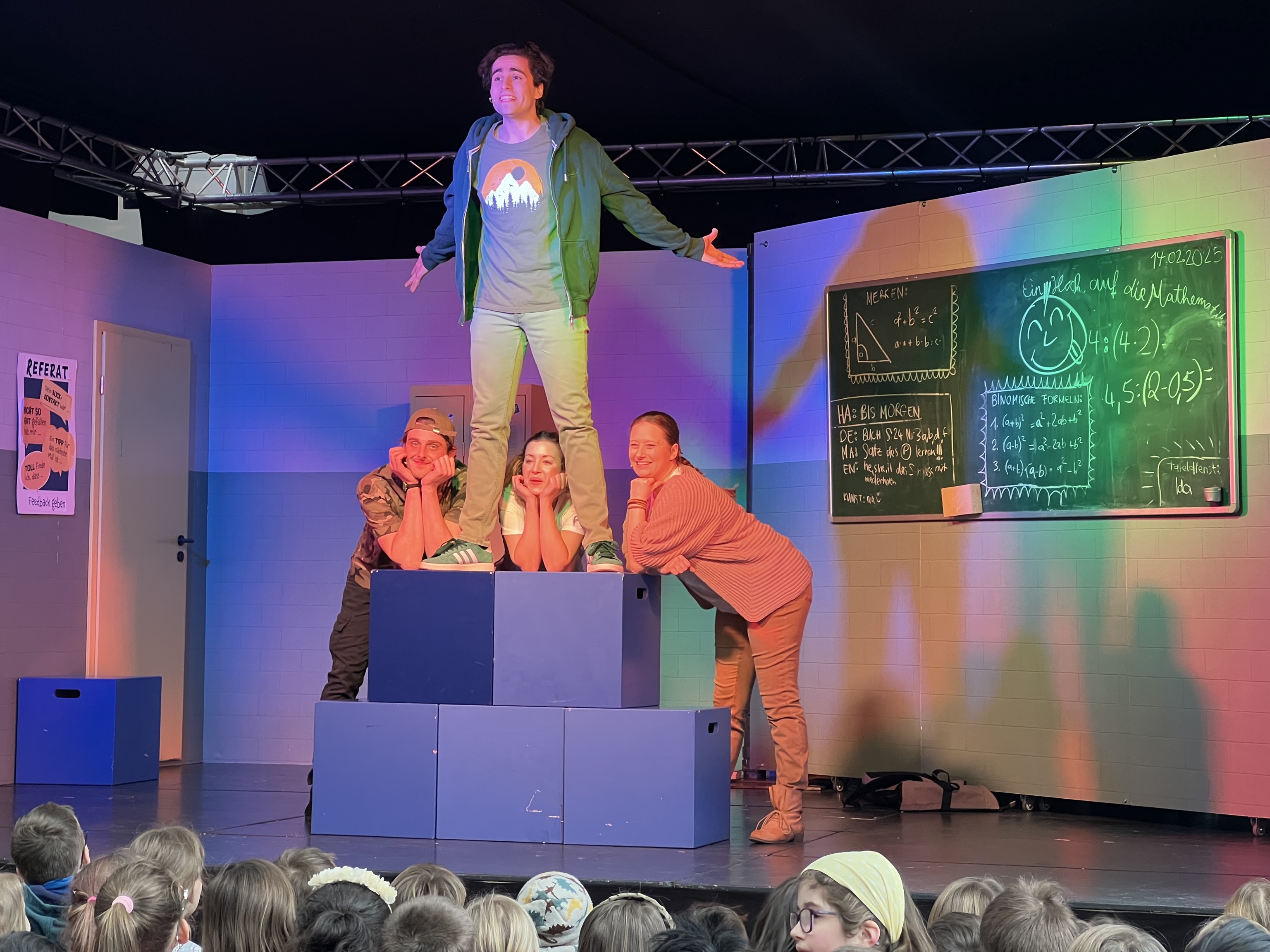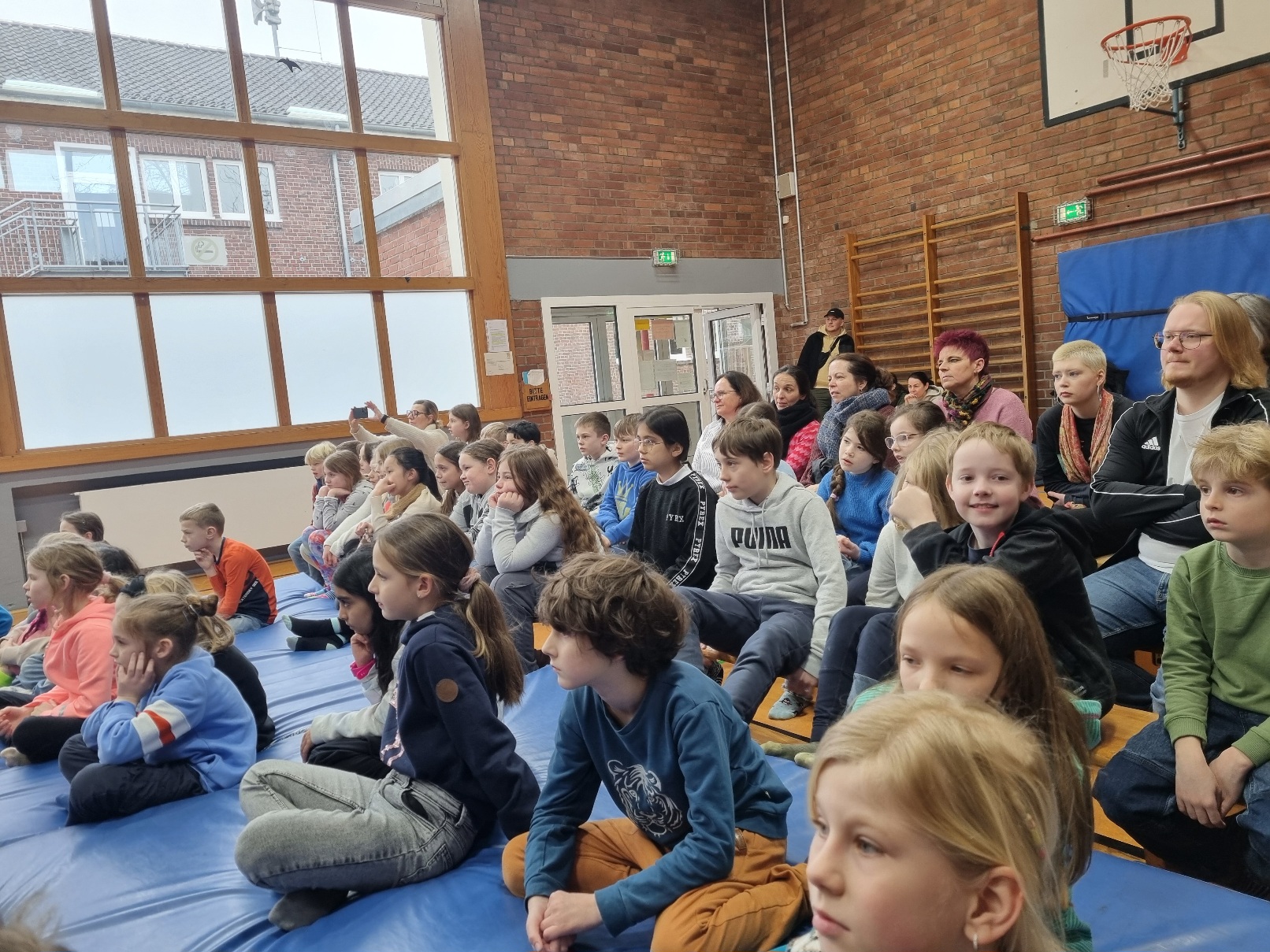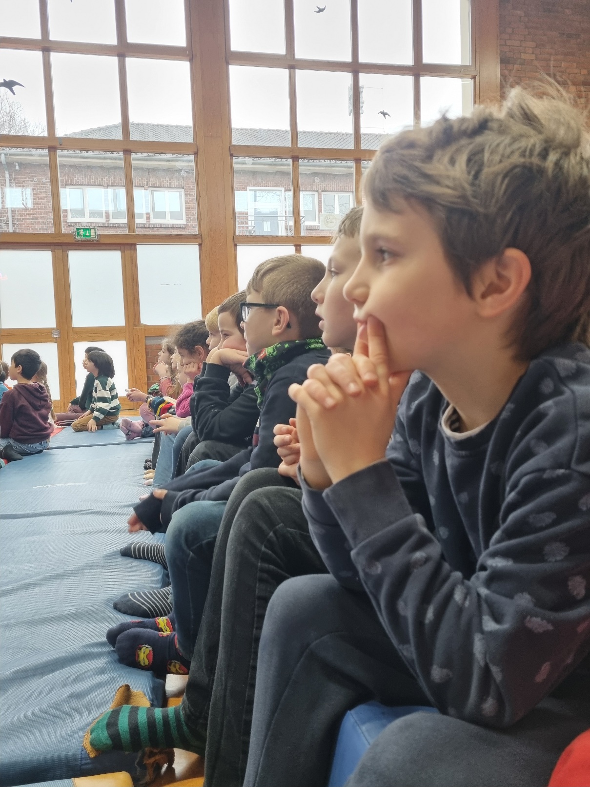 Auch in diesem Jahr konnten wir wieder die Bildungszugabe der Städteregion Aachen nutzen und mit der ganzen Schule die Aufführung „Peter Pan“ des DAS DA Theaters besuchen. Da der Zugang zu unserer Turnhalle für das Bühnenbild zu unwegsam ist, mussten wir wieder auf die Halle der KGS Straß zurückgreifen, die uns netterweise zur Verfügung gestellt wurde.