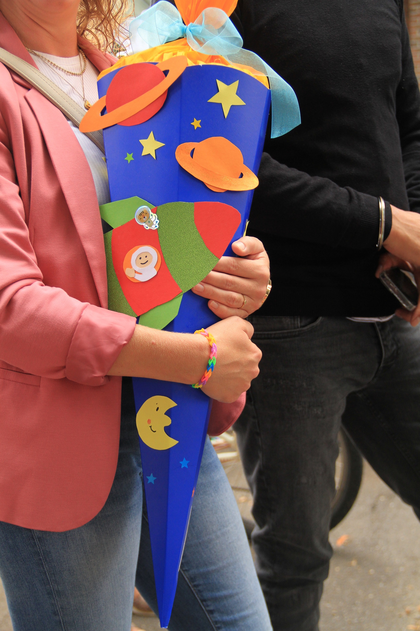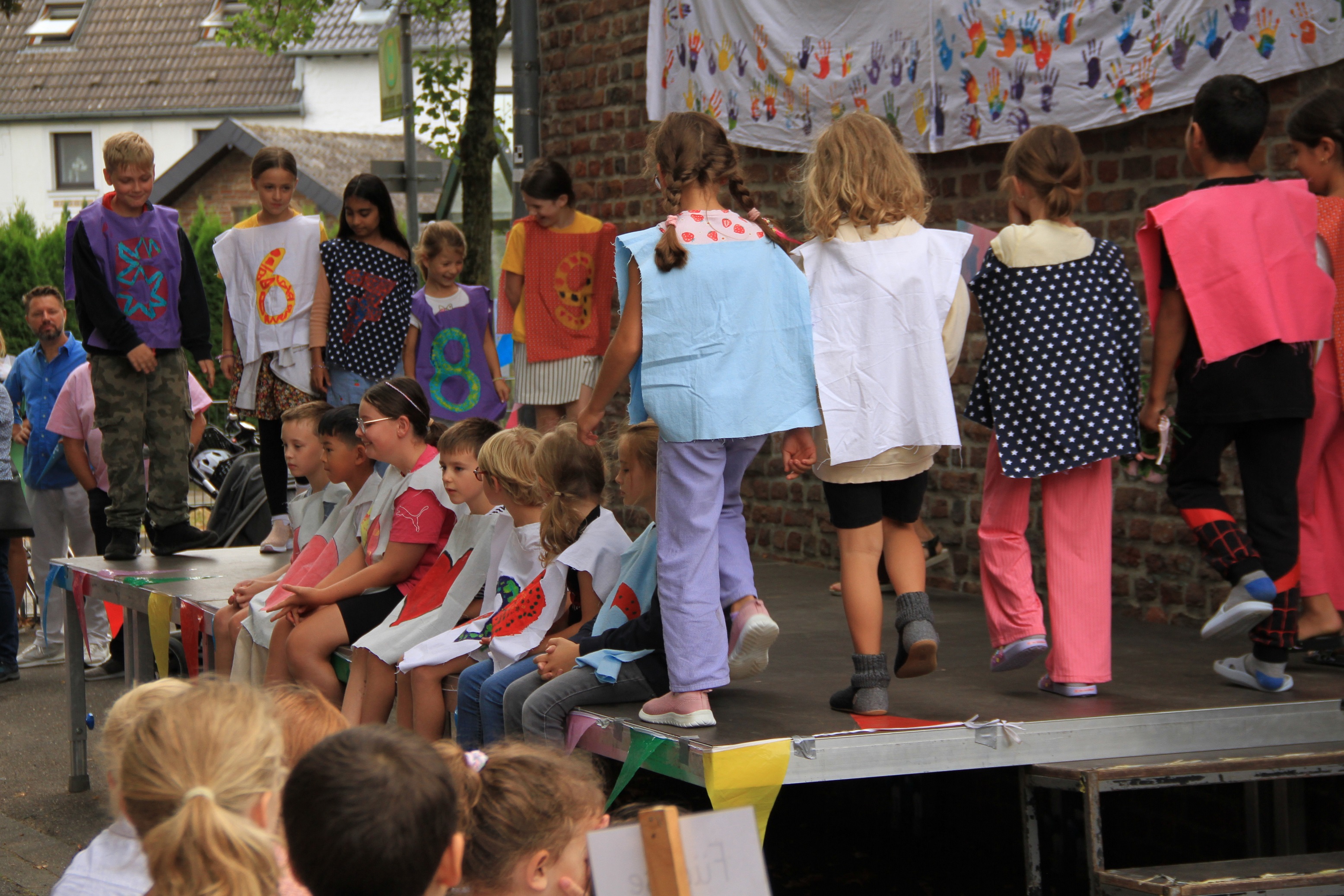 Die Feier begann auf dem Schulhof mit einer herzlichen Begrüßung durch die Schulleiterin. Anschließend präsentierten die Kinder ein liebevoll vorbereitetes, kleines Programm mit Liedern und Tänzen. Danach wurde es für die neuen Ersties spannend: Sie wurden namentlich aufgerufen und von ihren jeweiligen Klassen auf der Bühne in Empfang genommen. Anschließend ging es gemeinsam in den Klassenraum zur allerersten Unterrichtsstunde. Die bunten Schultüten blieben in dieser Zeit bei den Eltern und warteten dort auf ihren großen Auftritt nach dem Unterricht.
