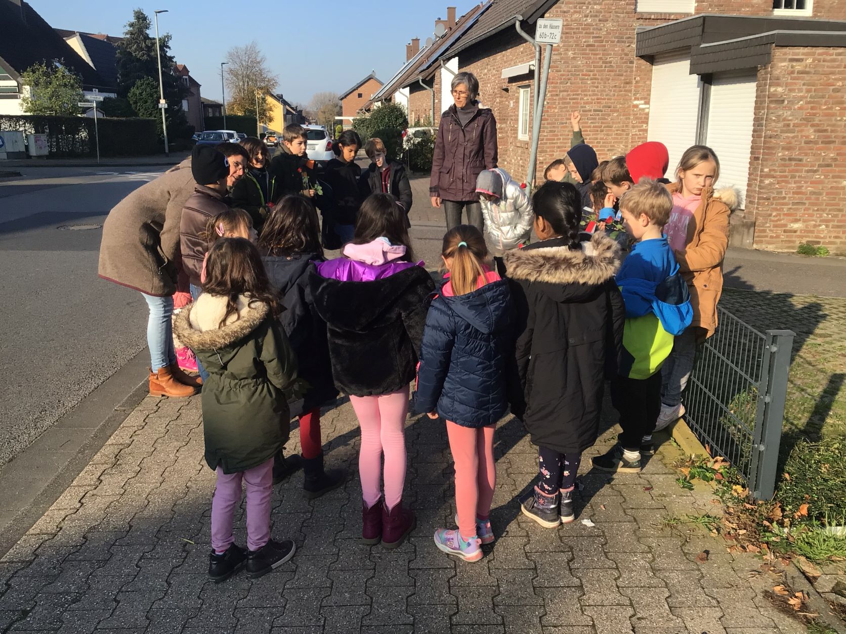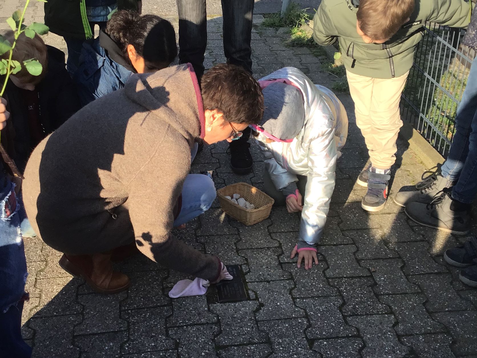 Petra, unsere Schulsozialarbeiterin, hat uns heute einen Stolperstein vorgestellt. Stolpersteine sind auf dem Bürgersteig eingebaut. Darauf stehen die Namen von jüdischen Menschen, die im 2.Weltkrieg abgeholt, deportiert und ermordet wurden.