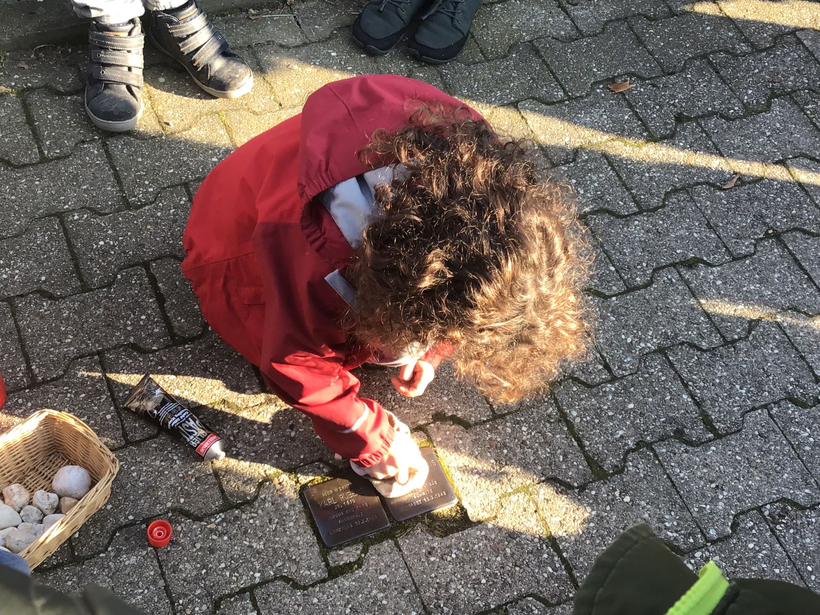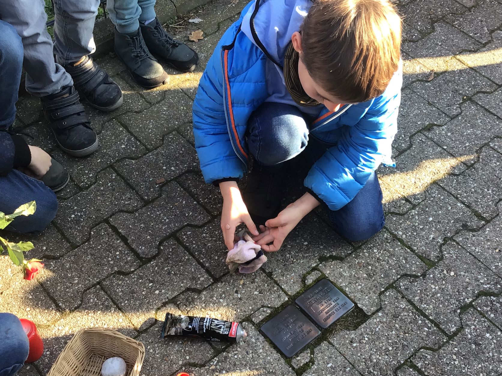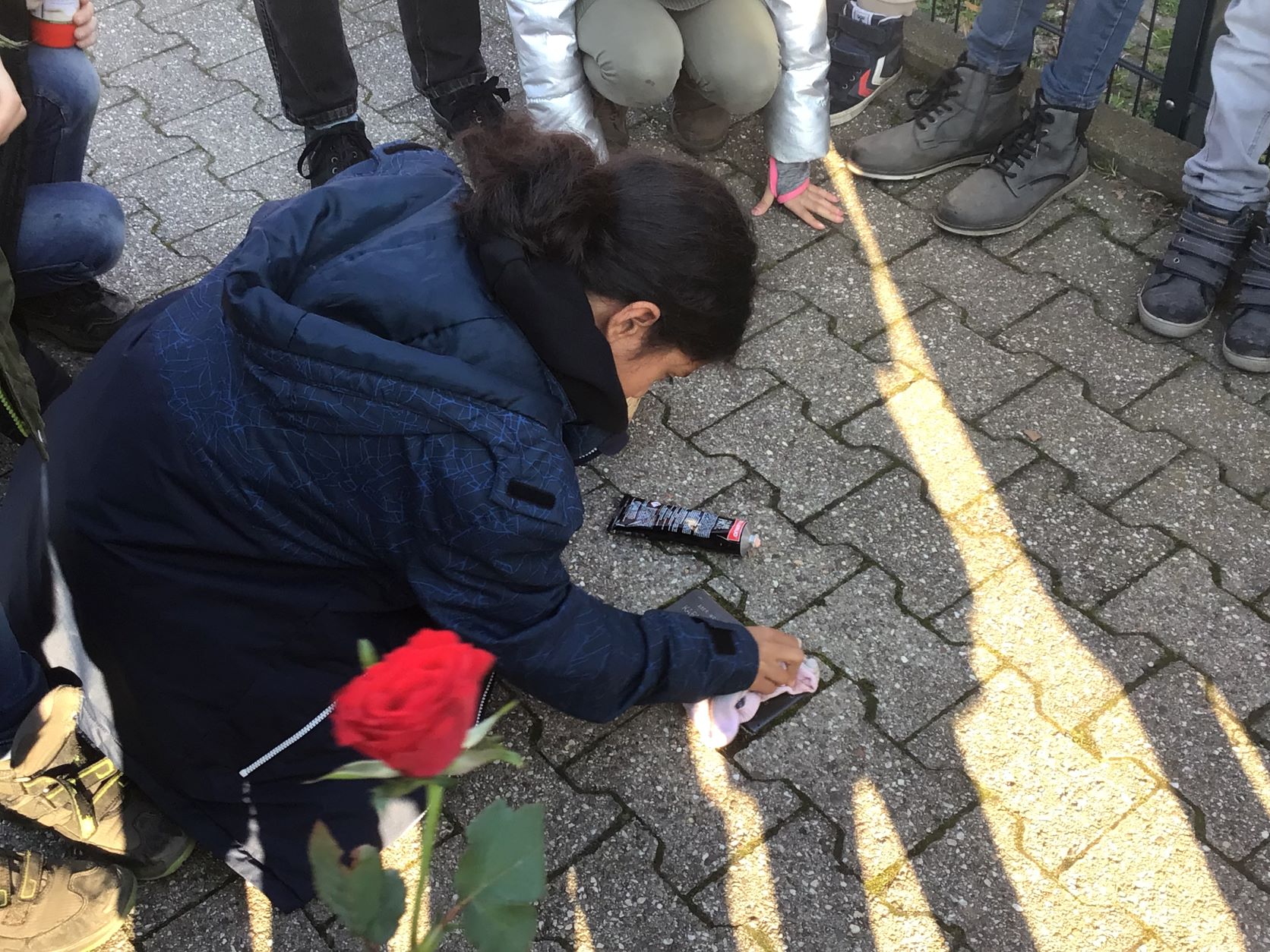 Wir haben die Stolpersteine geputzt und Rosen und Kerzen aufgestellt. Wir möchten, dass die Familie Rubens nicht vergessen wird und wieder mehr Menschen mit den Augen über die Steine stolpern und sich an diese schlimme Zeit erinnern. So etwas Schreckliches soll nie wieder passieren!