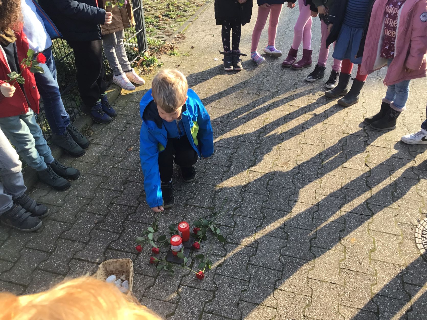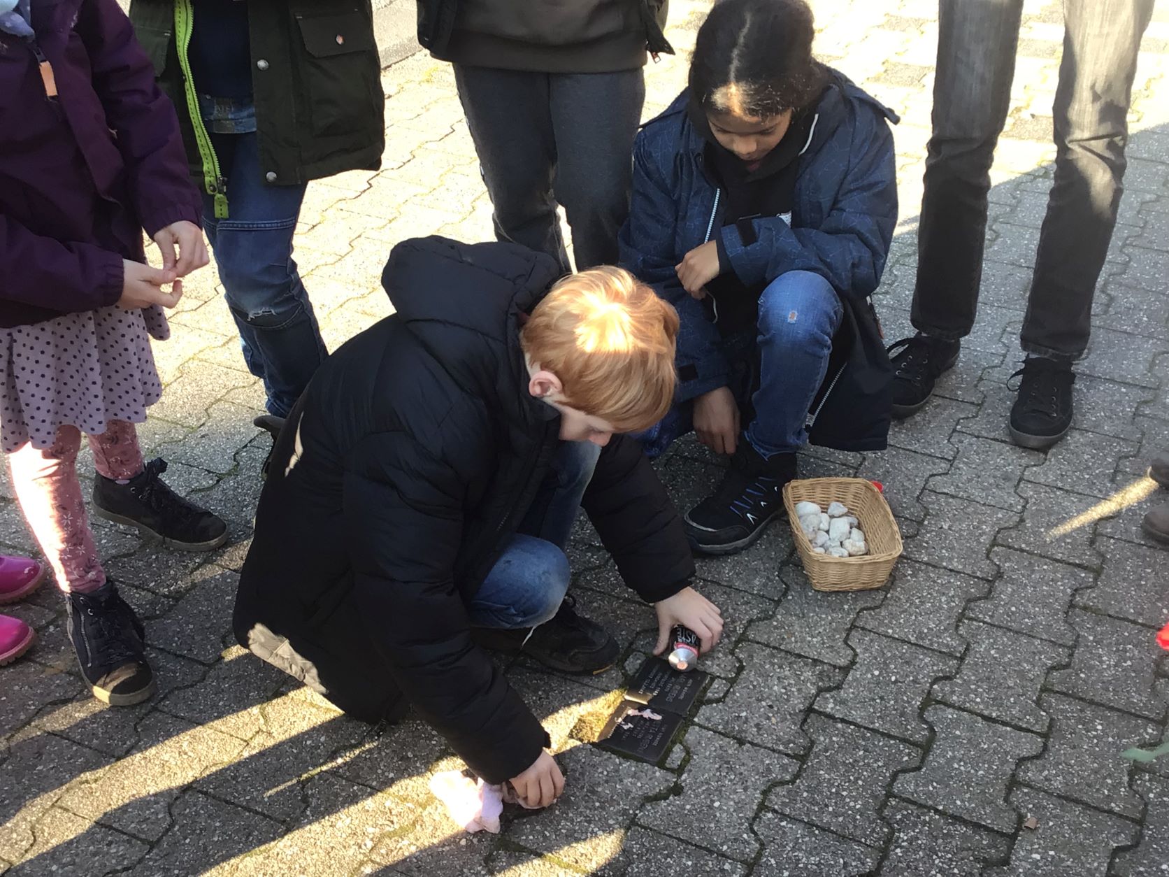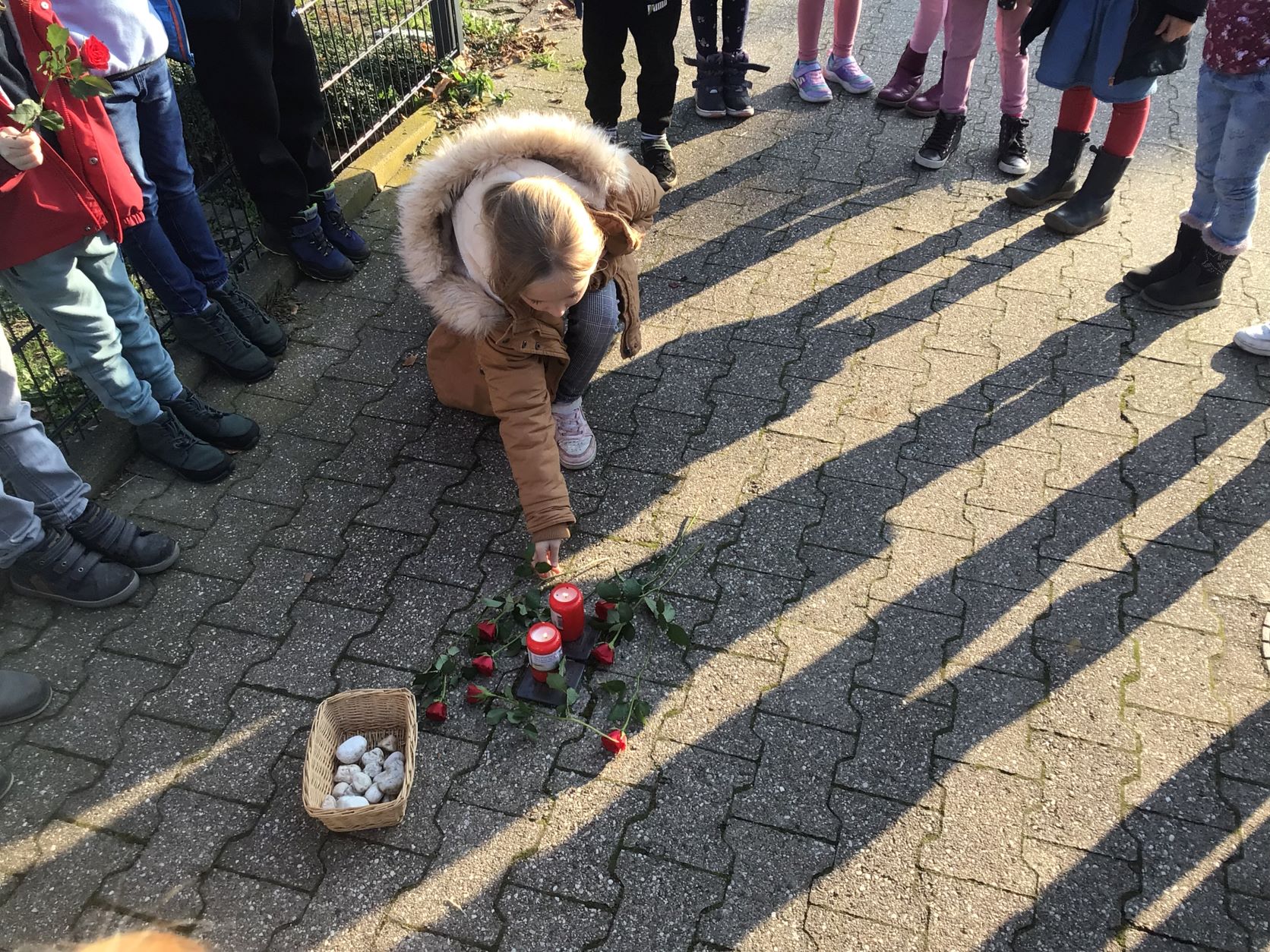 Wir haben die Stolpersteine geputzt und Rosen und Kerzen aufgestellt. Wir möchten, dass die Familie Rubens nicht vergessen wird und wieder mehr Menschen mit den Augen über die Steine stolpern und sich an diese schlimme Zeit erinnern. So etwas Schreckliches soll nie wieder passieren!