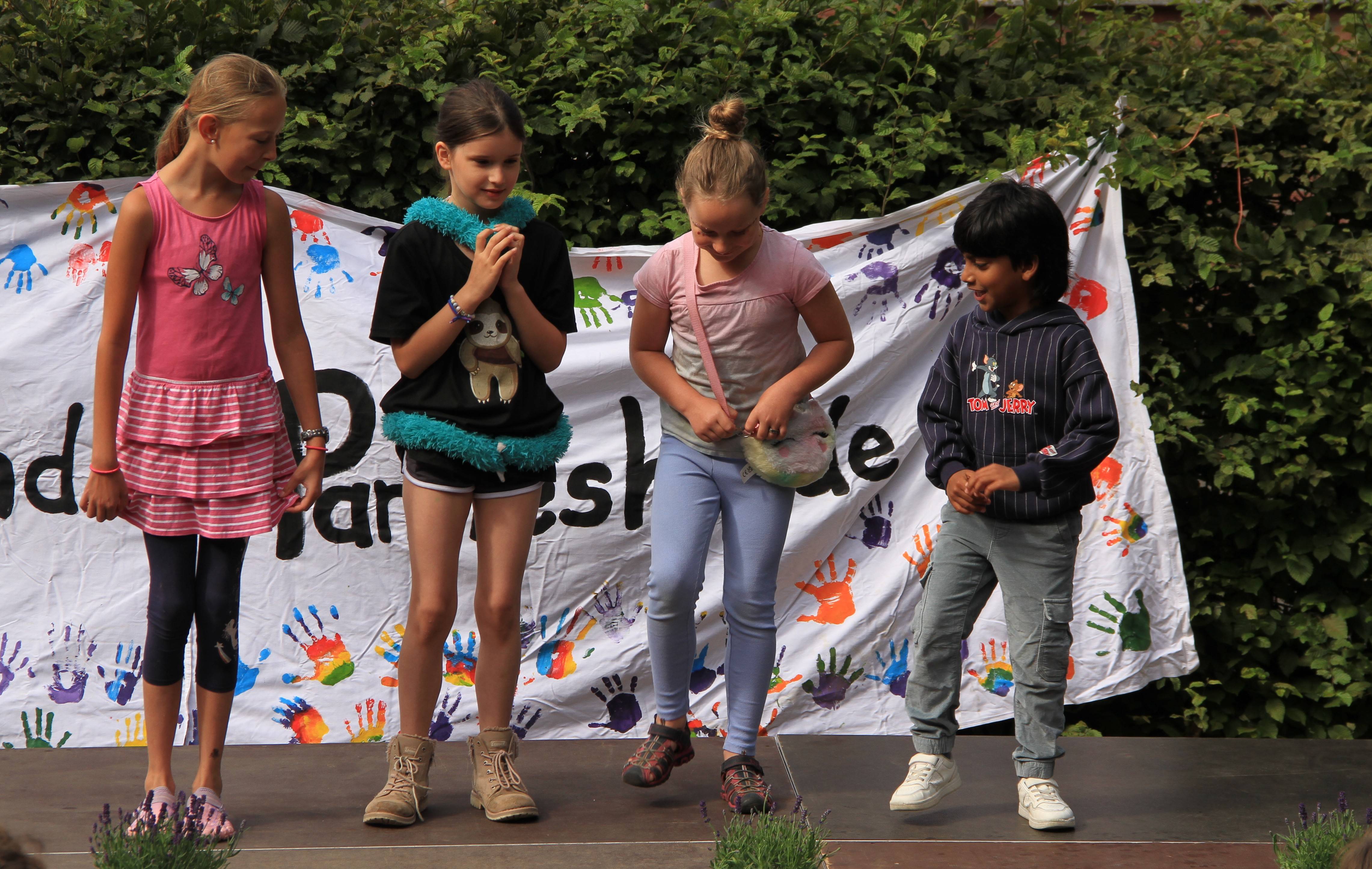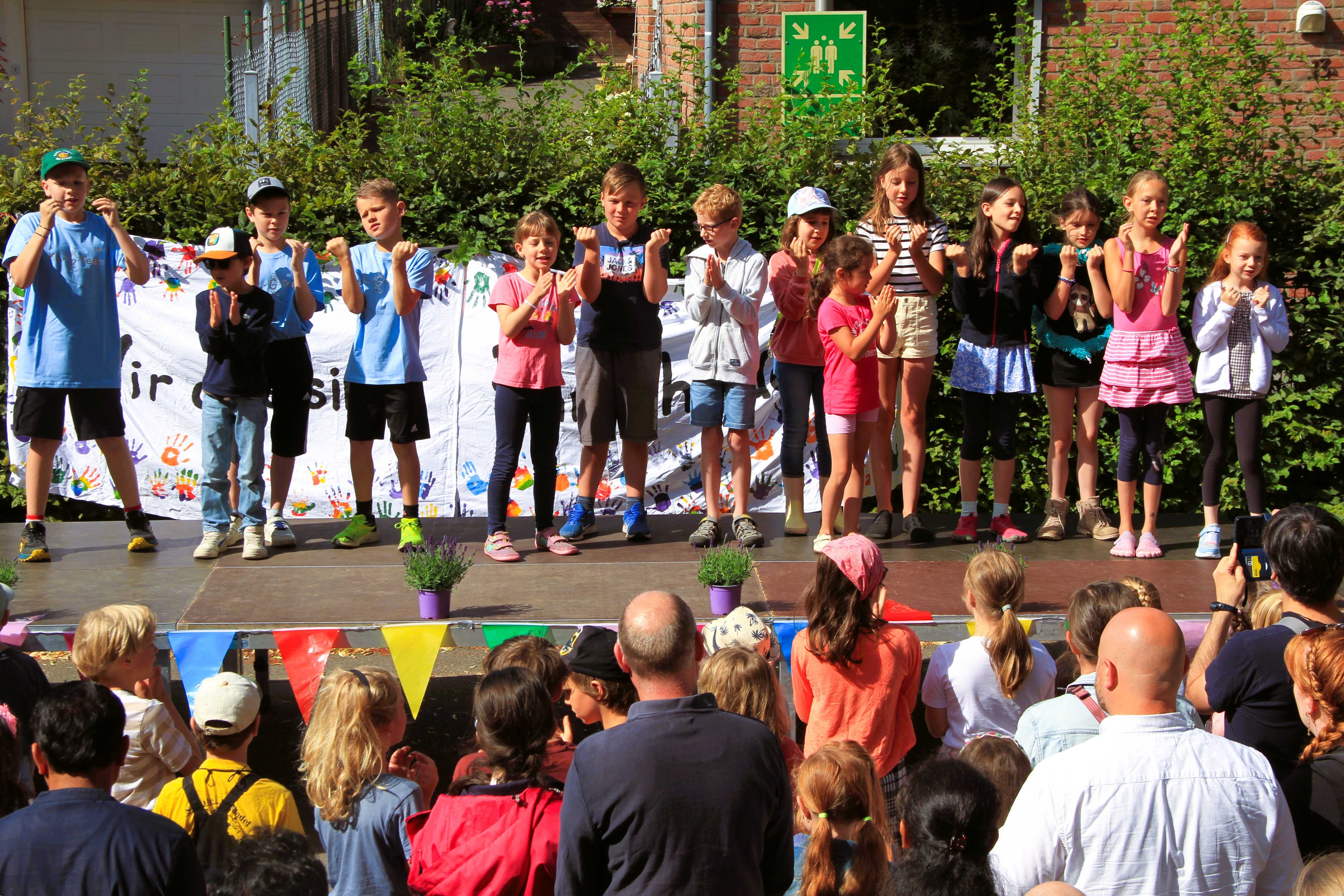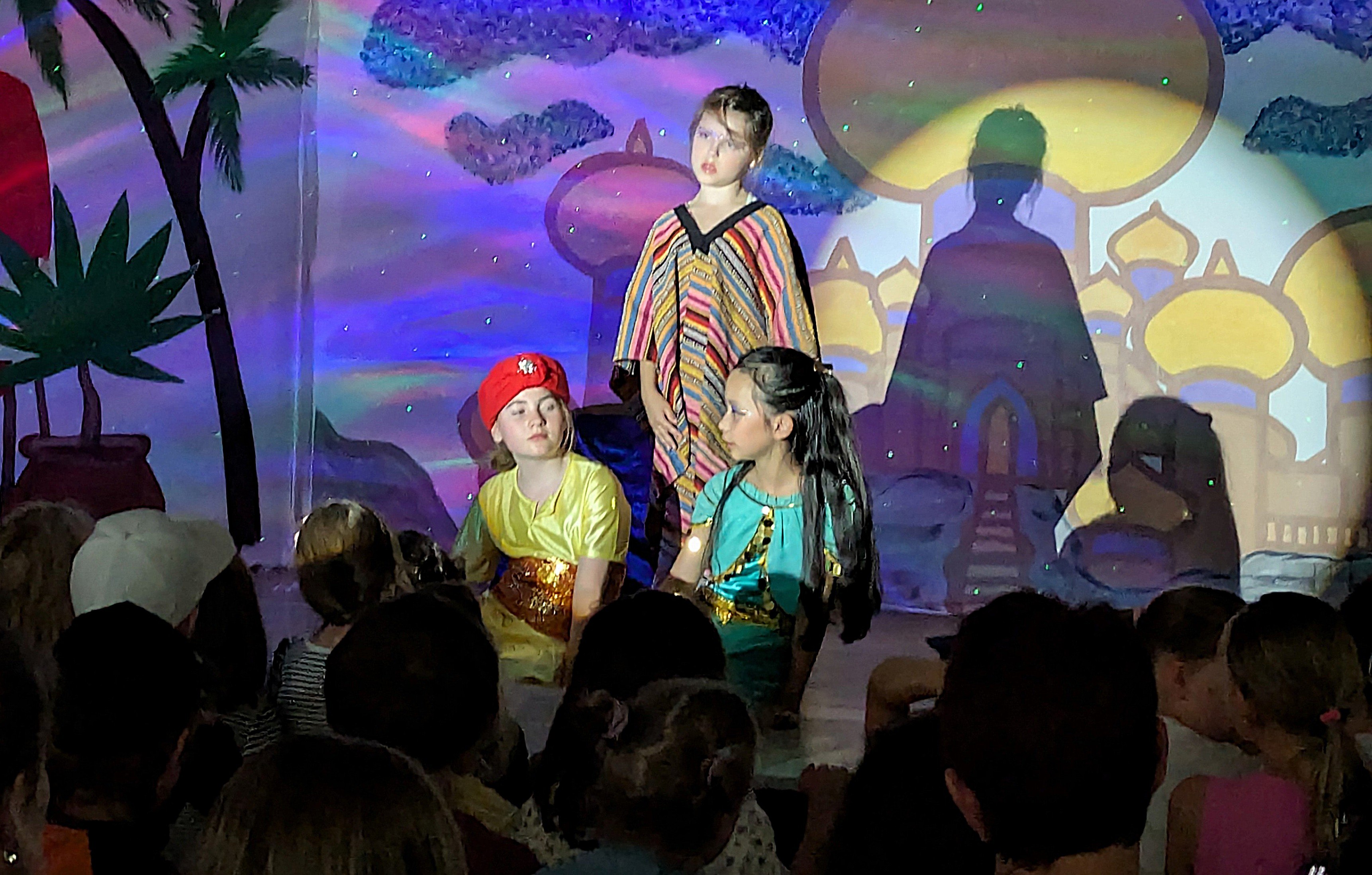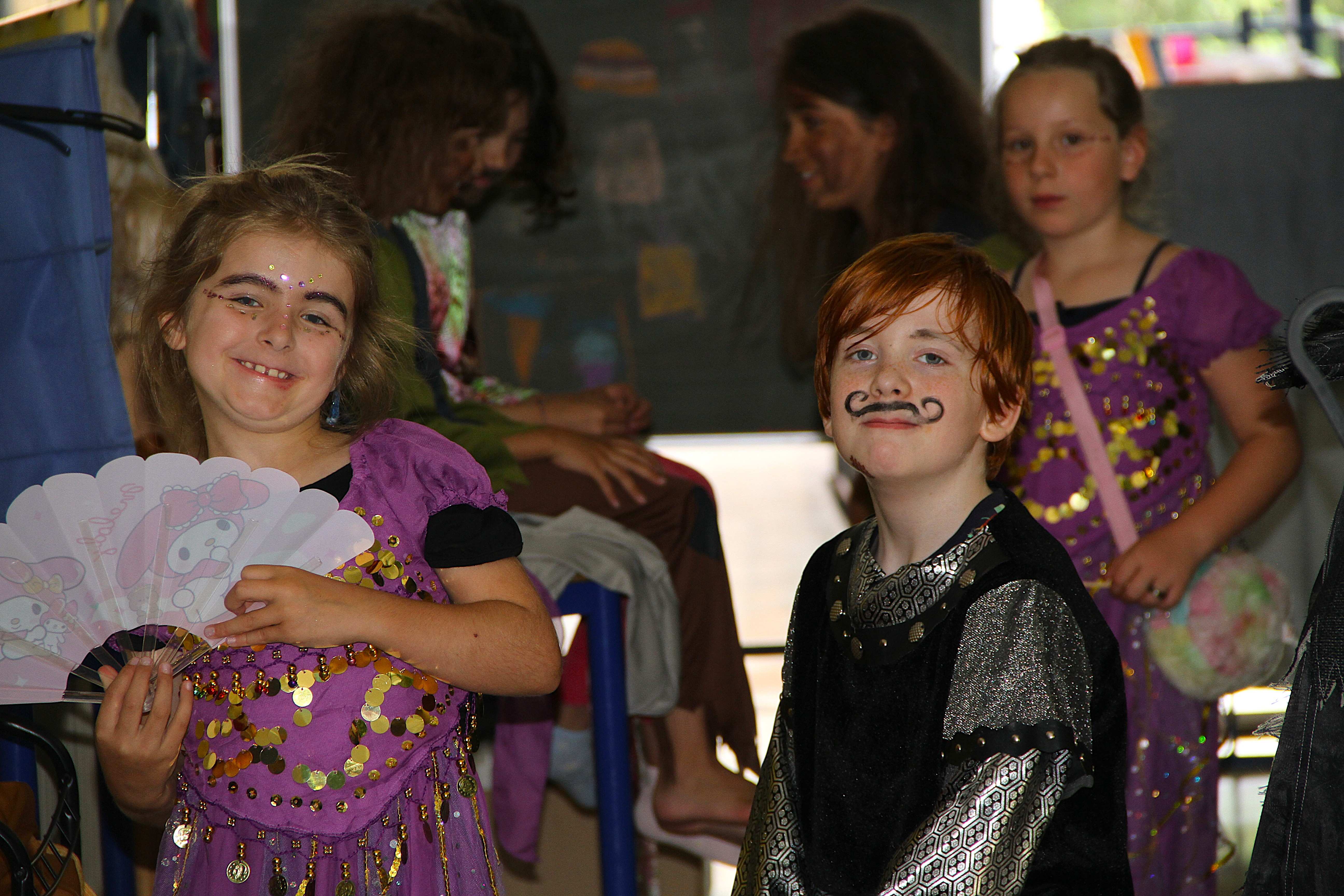 Am letzten Samstag vor Ende des Schuljahres fand traditionell wieder unser Schulfest statt. Bei perfektem Wetter, trocken, nicht zu warm und nicht zu kalt, konnte Frau Braun nach einem kleinen Bühnenprogramm das Fest offiziell eröffnen. Auf dem gesamten Schulgelände gab es zahlreiche bunte Spiel- und Bastelangebote. In der Mensa war wieder ein Wahnsinnsbuffet aufgebaut. Außerdem wurde leckeres Eis angeboten. Das Highlight des Schulfestes war sicherlich auch in diesem Jahr die Aufführung der Theater-AG, die diesmal das Stück "Aladdin" einstudiert hatte und das Publikum mit fantasievollen Kostümen und einem wunderschönen Bühnenbild in die Welt aus 1000 und einer Nacht entführte.