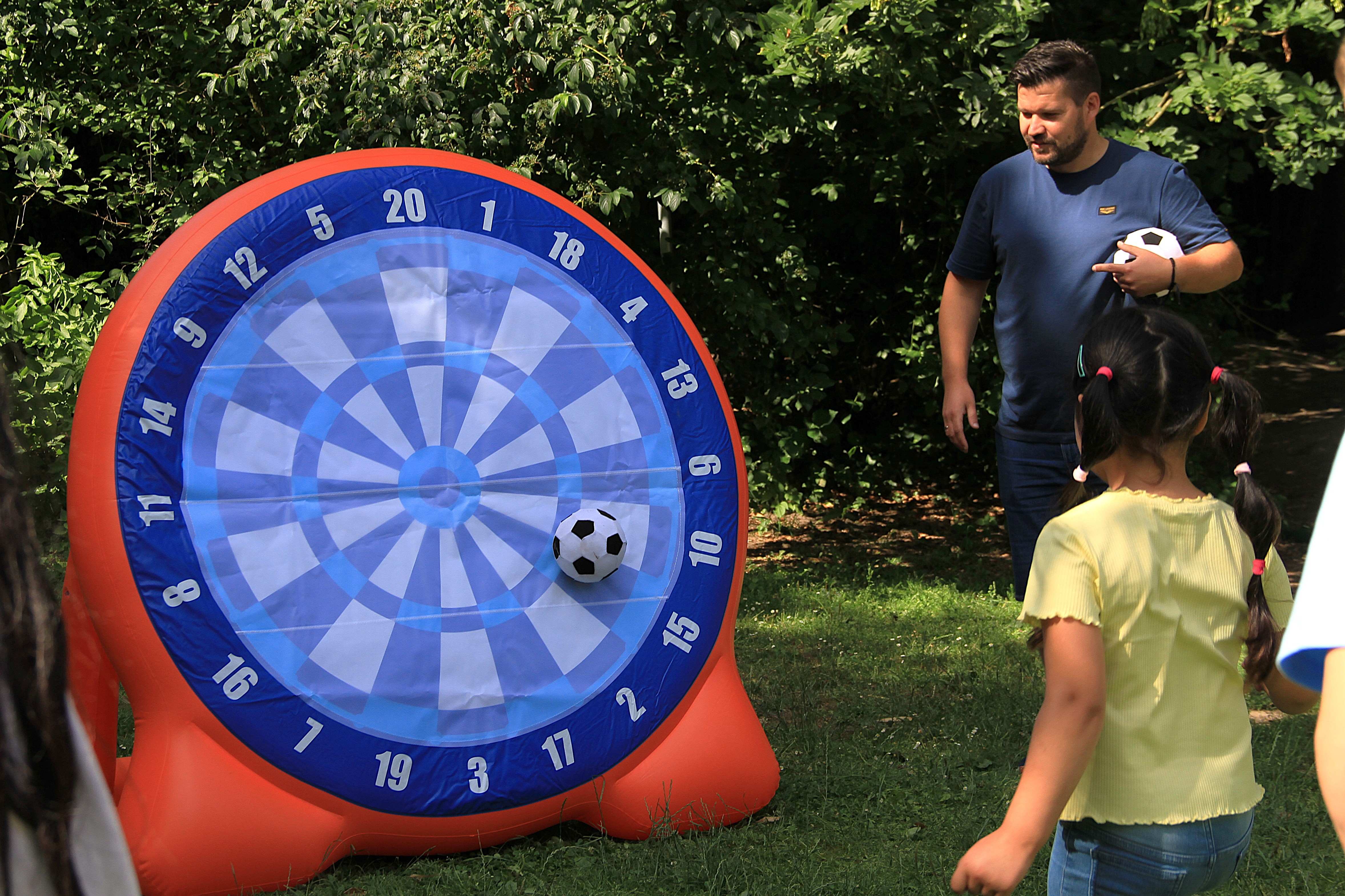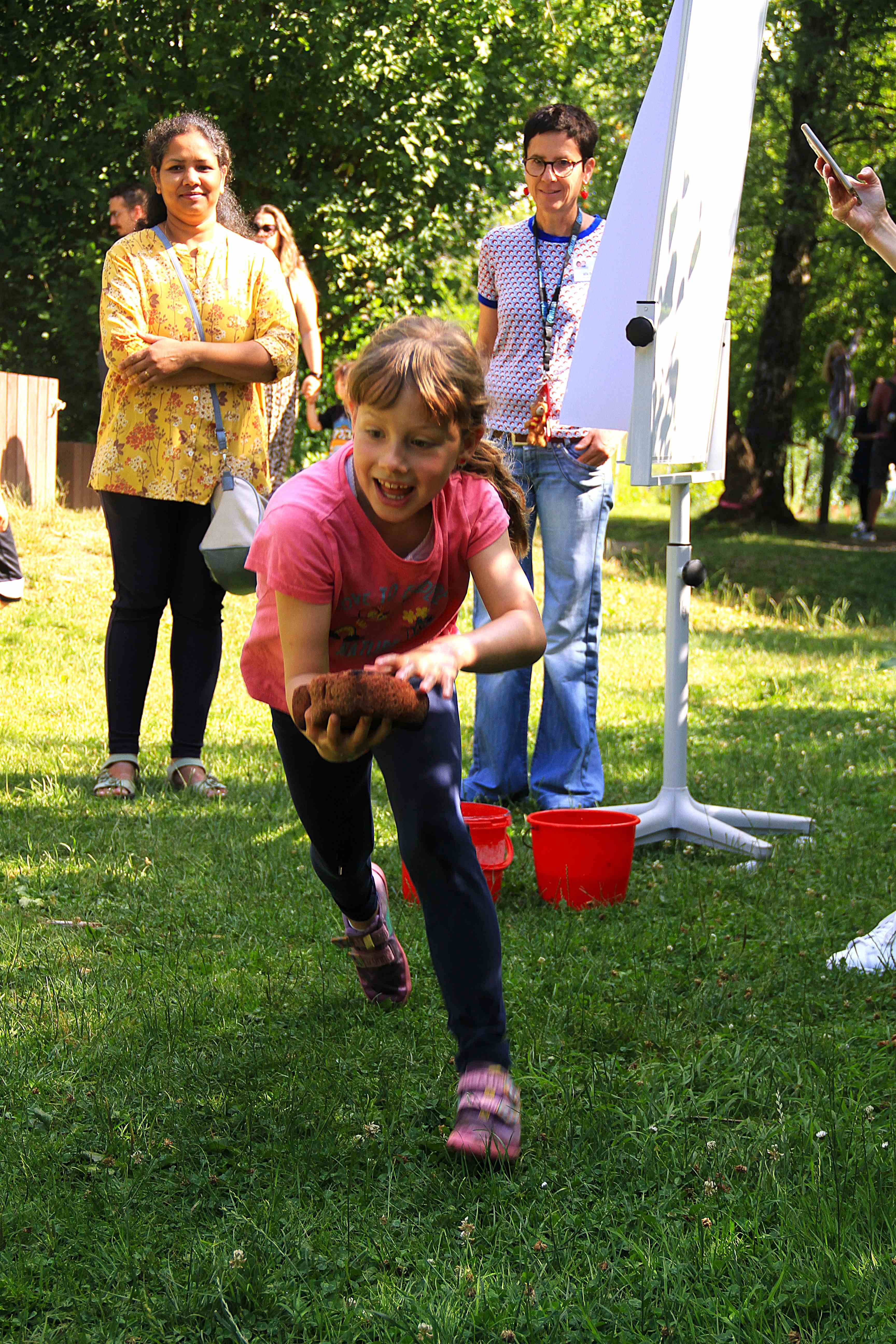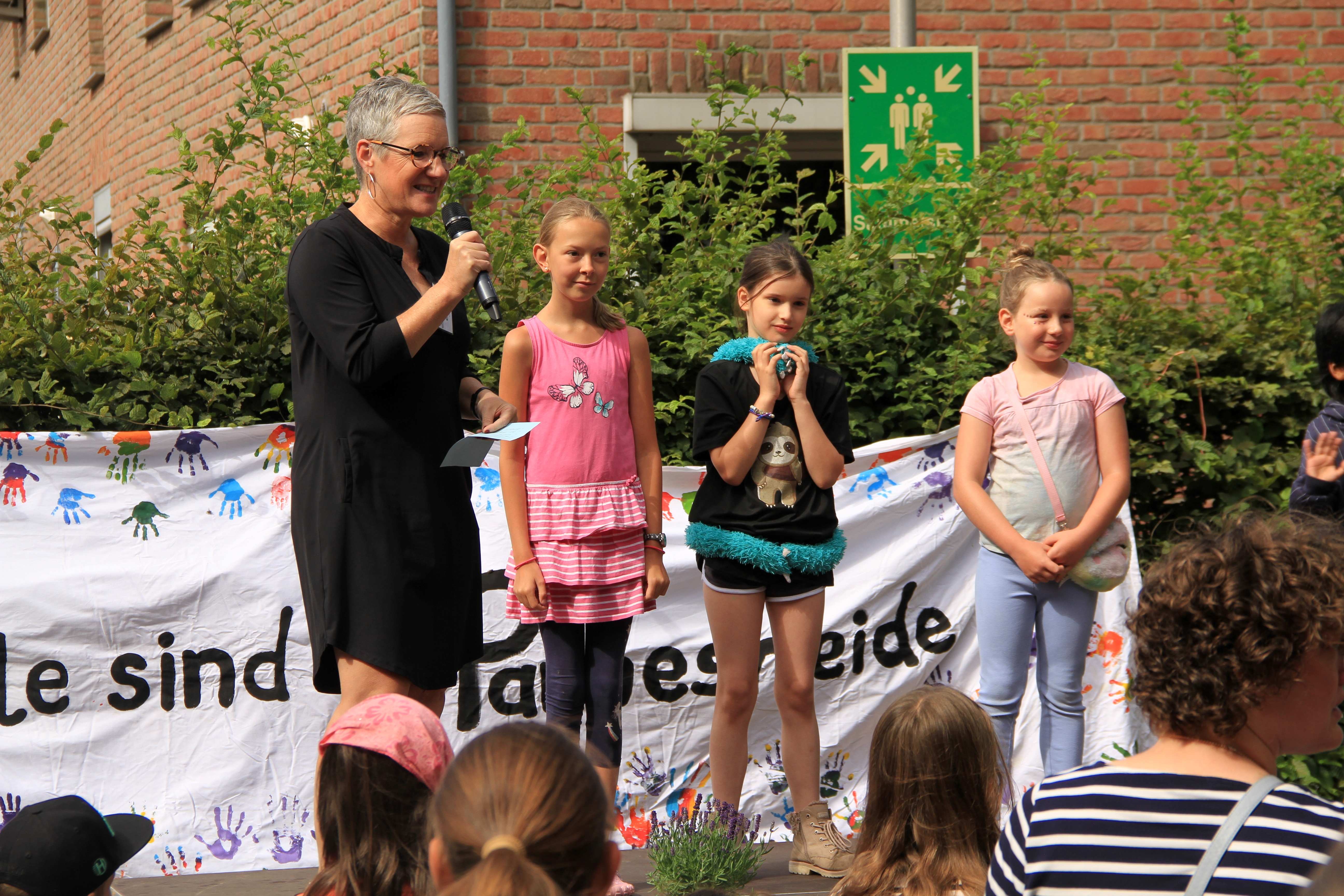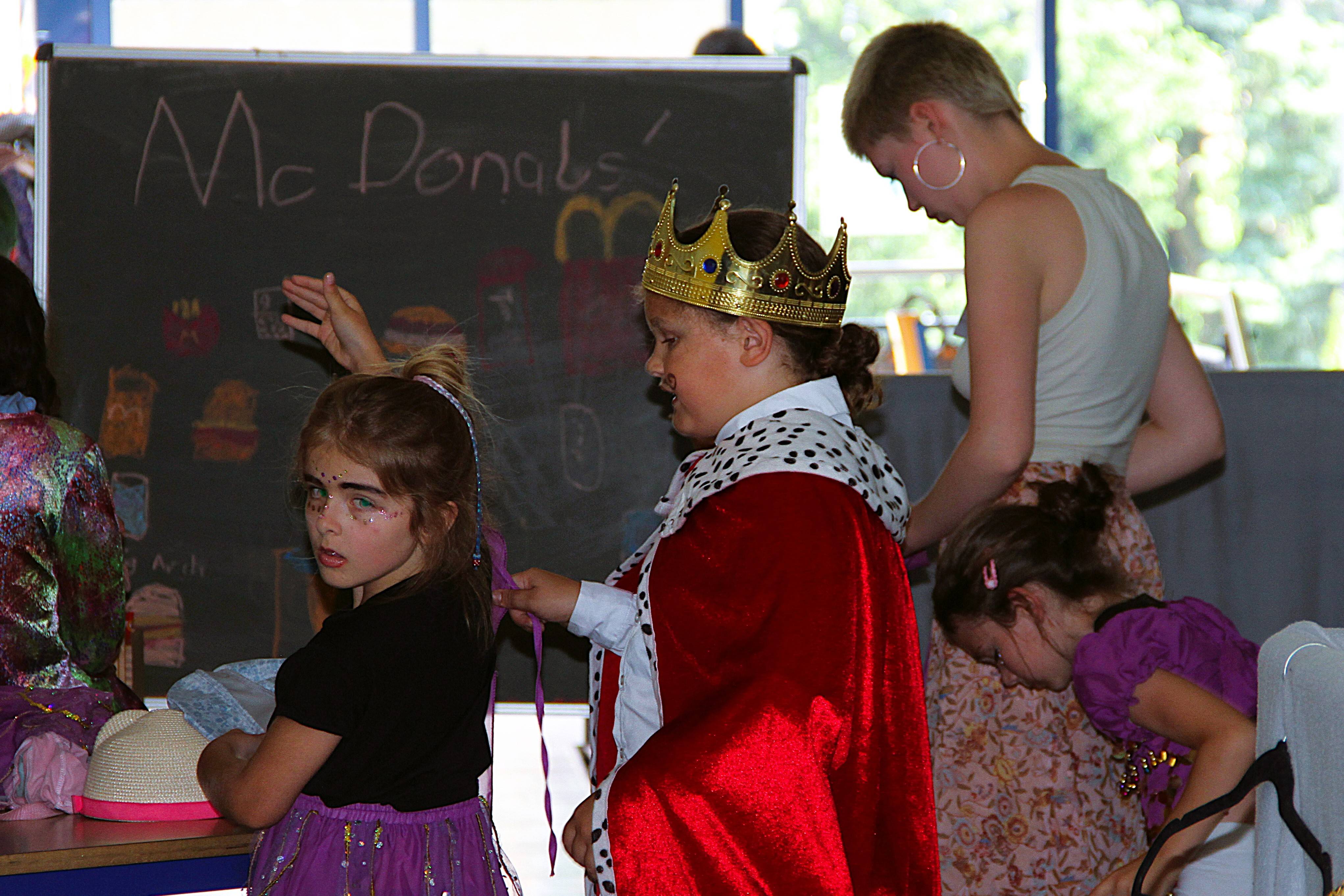 Am letzten Samstag vor Ende des Schuljahres fand traditionell wieder unser Schulfest statt. Bei perfektem Wetter, trocken, nicht zu warm und nicht zu kalt, konnte Frau Braun nach einem kleinen Bühnenprogramm das Fest offiziell eröffnen. Auf dem gesamten Schulgelände gab es zahlreiche bunte Spiel- und Bastelangebote. In der Mensa war wieder ein Wahnsinnsbuffet aufgebaut. Außerdem wurde leckeres Eis angeboten. Das Highlight des Schulfestes war sicherlich auch in diesem Jahr die Aufführung der Theater-AG, die diesmal das Stück "Aladdin" einstudiert hatte und das Publikum mit fantasievollen Kostümen und einem wunderschönen Bühnenbild in die Welt aus 1000 und einer Nacht entführte.