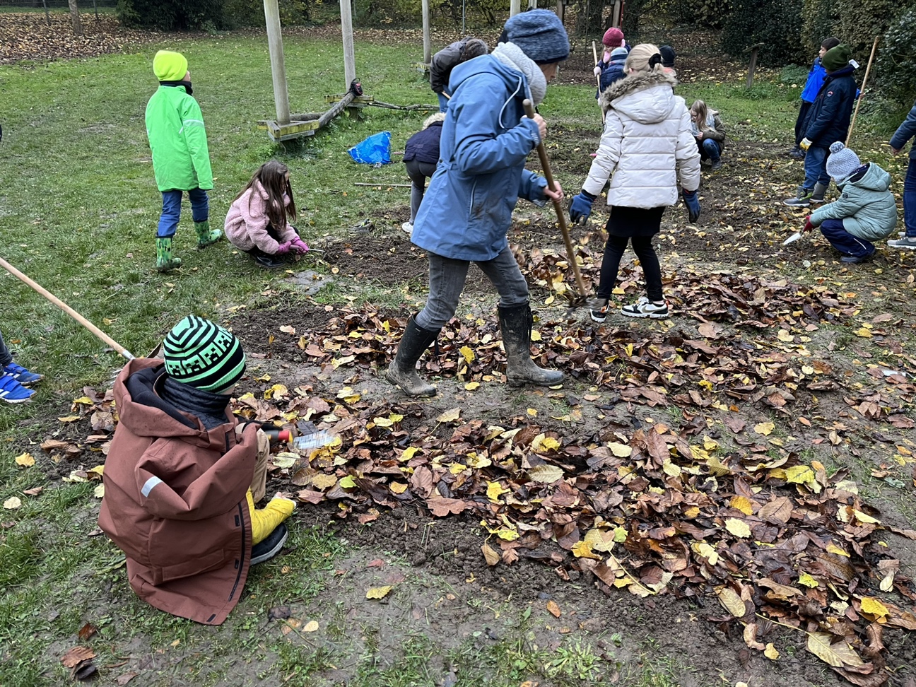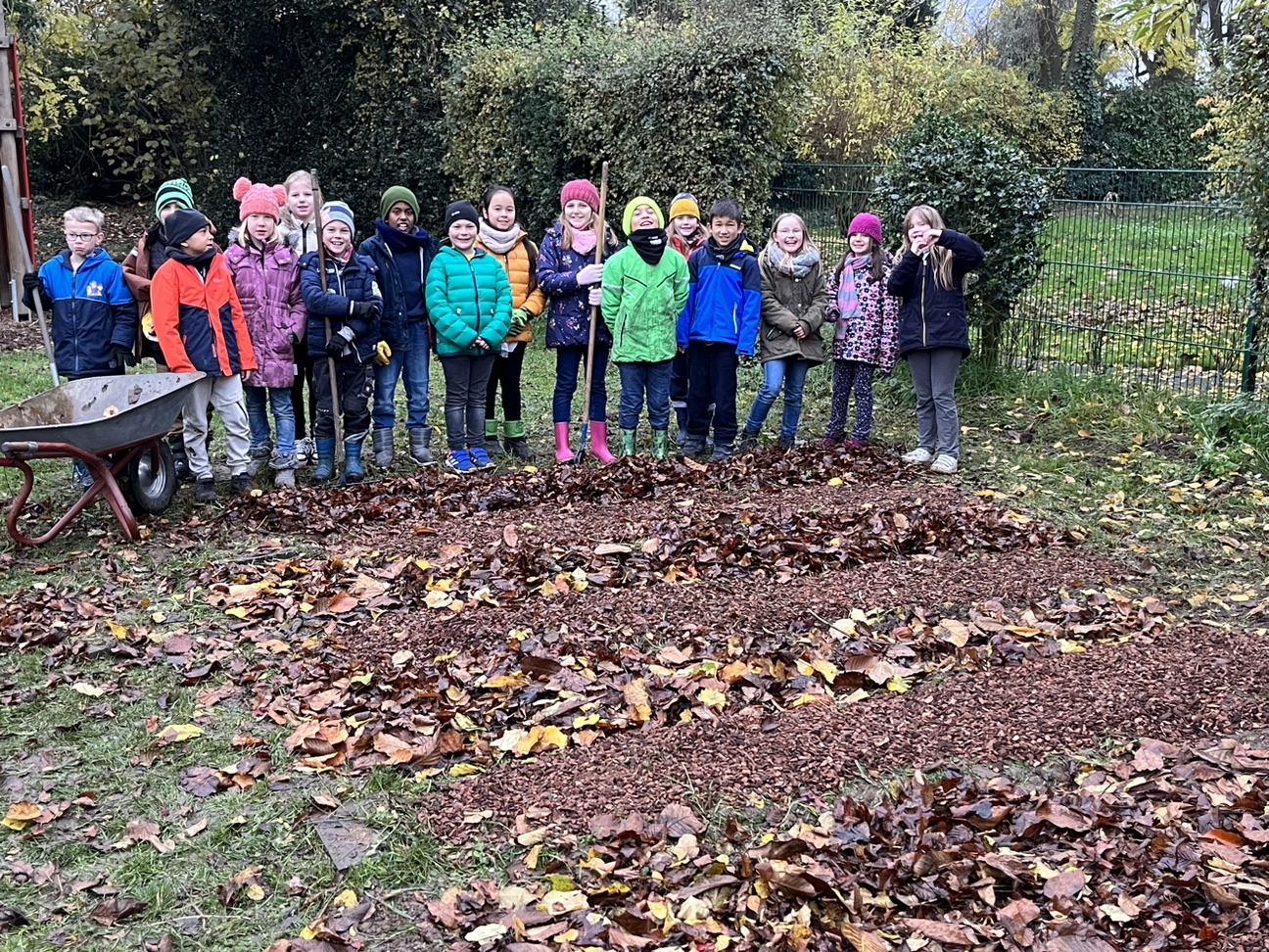 Hier ein paar Fotos vom Acker, den wir mit vereinten Kräften erfolgreich winterfest gemacht haben. Auf die Beete kam Laub als Mulchschicht und auf die Wege Pinienrinde. Nun kann sich der Acker erholen und neue Kraft für das nächste Ackerjahr sammeln.