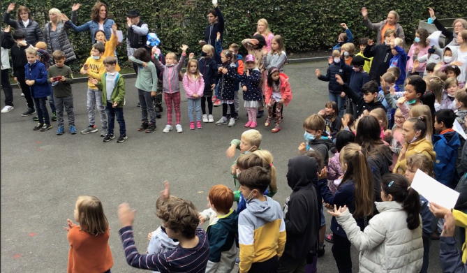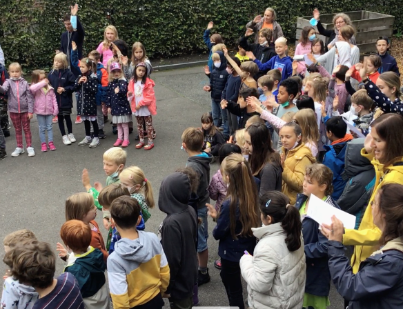Am 31. August trafen sich alle Kinder und MitarbeiterInnen auf dem Schulhof, um sich gebührend von Nils zu verabschieden, der nun seine Zeit als Bundesfreiwilligendienstler (Bufdi) bei uns beenden musste. Ein ganzes Jahr lang unterstützte er mit viel Engagement das Team in verschiedenen Bereichen des Vormittags und des Nachmittags. Er half einzelnen Kindern beim Arbeiten, war in vielen schwierigen Situationen zur Stelle und begleitete Ausflüge und den Schwimm- und Sportunterricht. Während der Zeit der Schulschließung und des Wechselunterrichts war er eine verlässliche Konstante in der Notbetreuung. Gegen Ende seiner Bufdi-Zeit konnte auch der Pannesheider Frühsport wieder eingeführt werden, dessen Leitung er bereitwillig übernahm.
