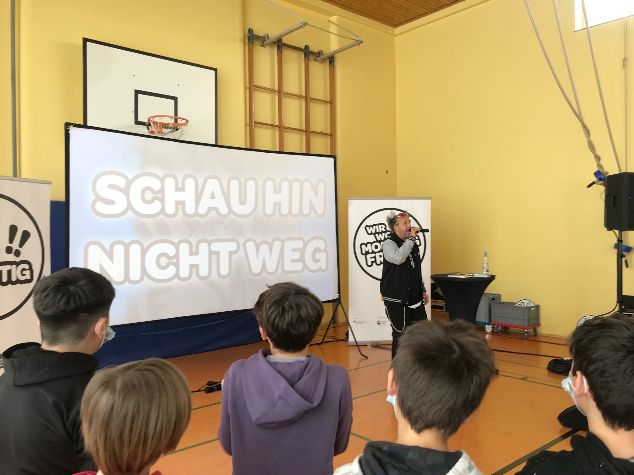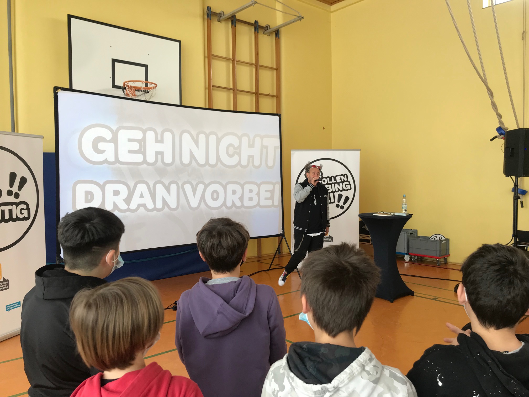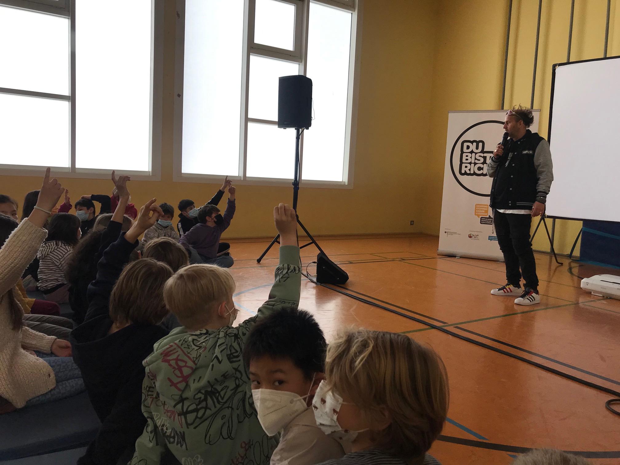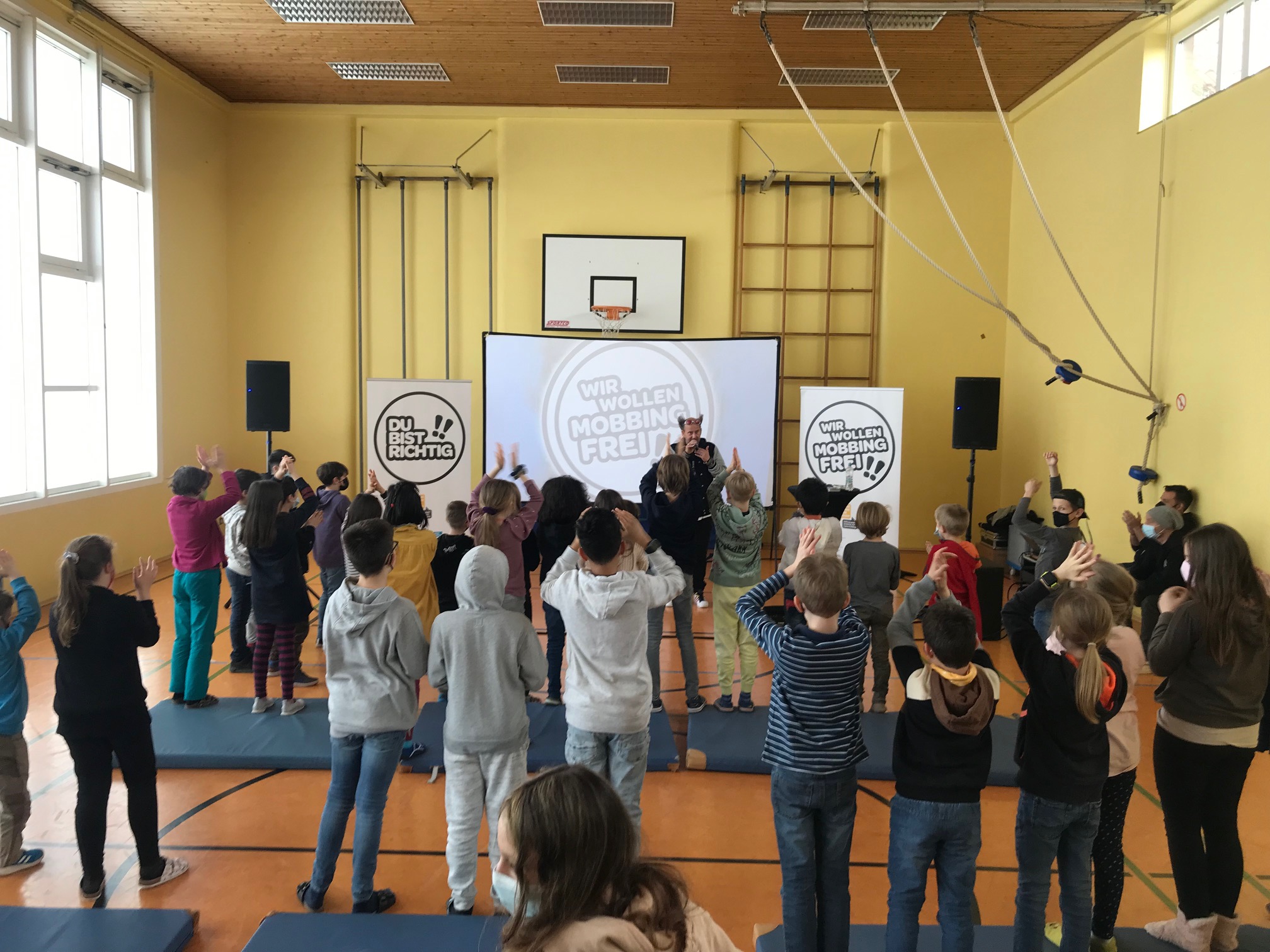 Am 30. März war Tom Lehel, bekannt vom KIKA, mit seinem Programm „Wir wollen mobbingfrei!“ bei uns zu Gast. Mit Geschichten aus seiner eigenen Kindheit und coolen Songs begeisterte er die Dritties und Vierties. Gemeinsam wurde thematisiert, was Mobbing überhaupt genau ist und wie man sich dagegen stark machen kann. Wichtig ist, dass man sich als Gruppe dafür einsetzt, dass es gar nicht erst zum Mobbing kommt und niemand ausgegrenzt wird; denn auch in Pannesheide wollen wir mobbingfrei!